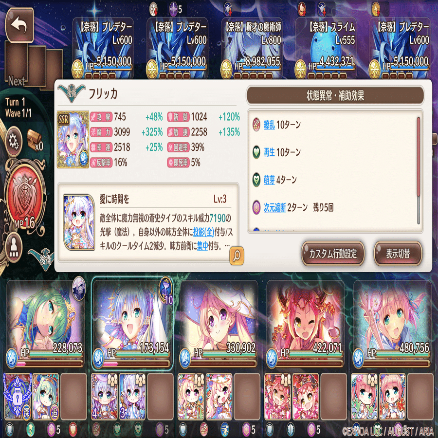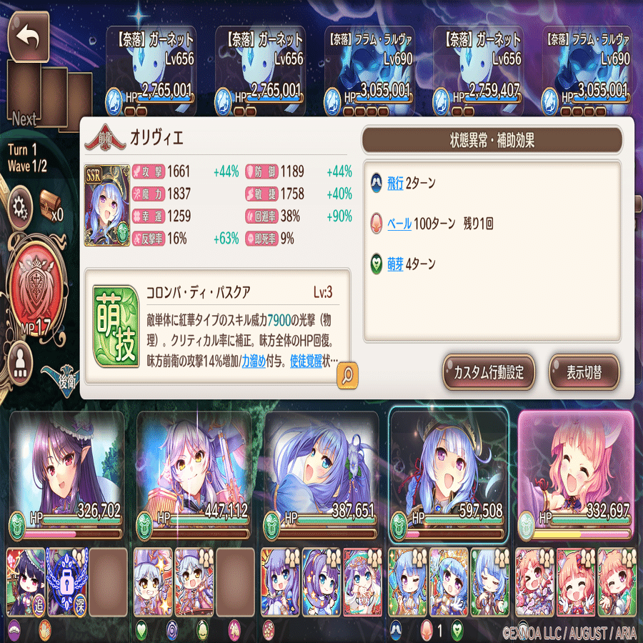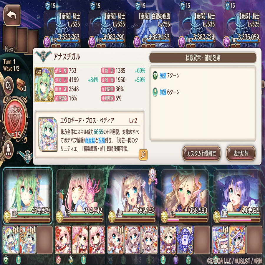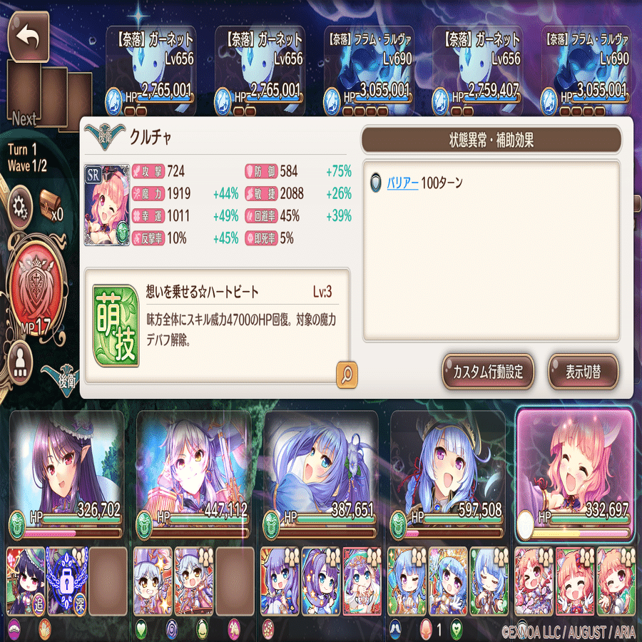 カスタム行動設定は萌技→前衛回復→攻撃→後衛回復。