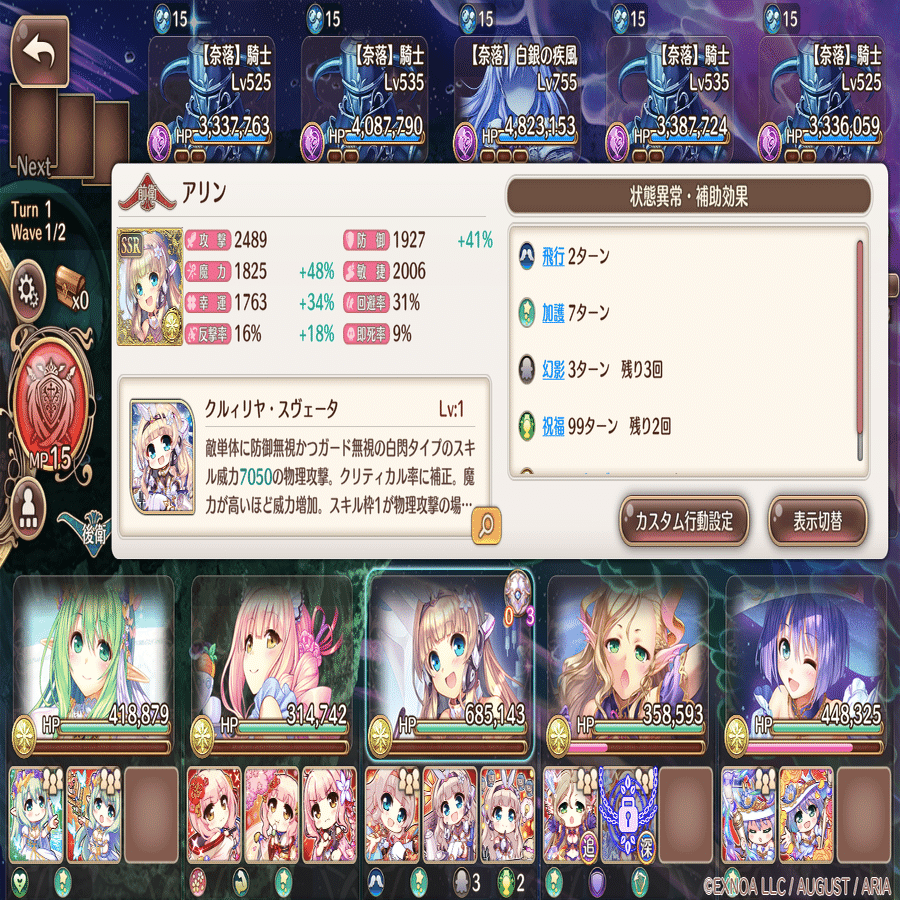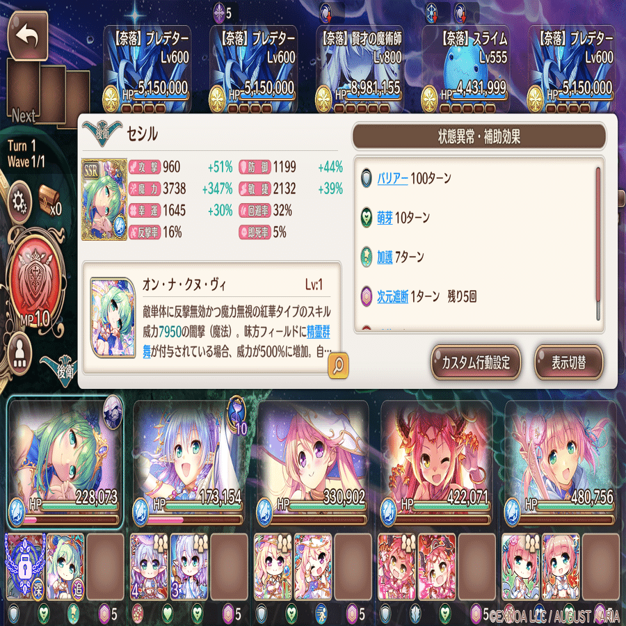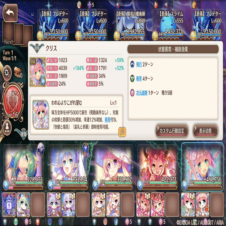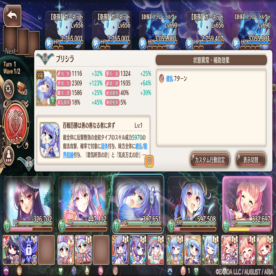 カスタム行動設定は萌技→前衛回復→攻撃→後衛回復。