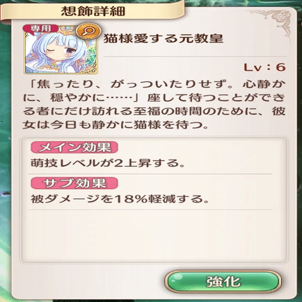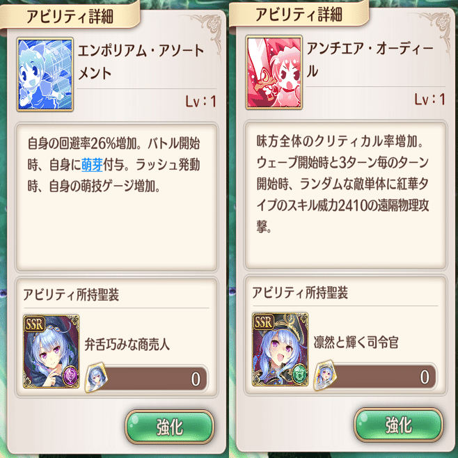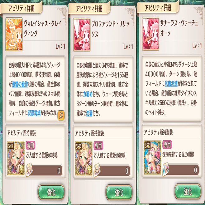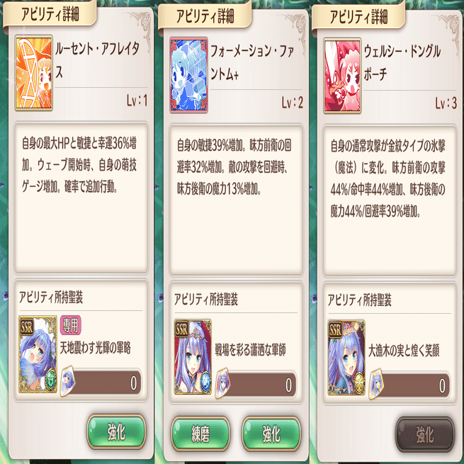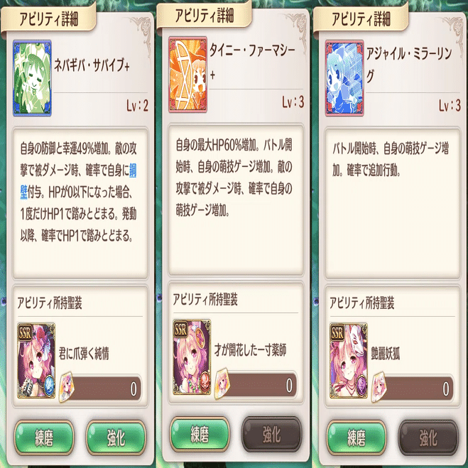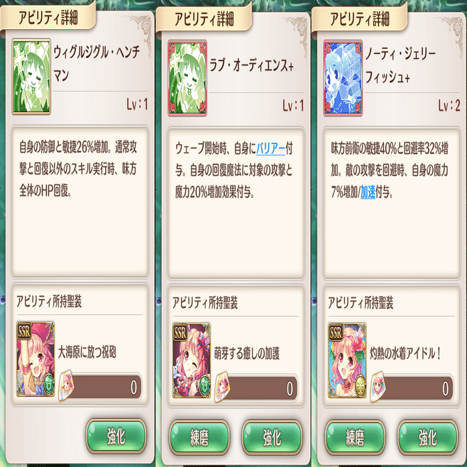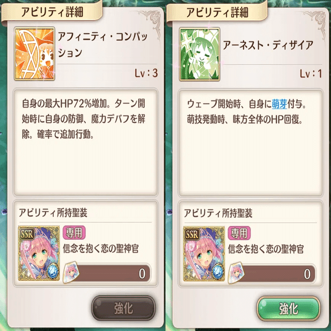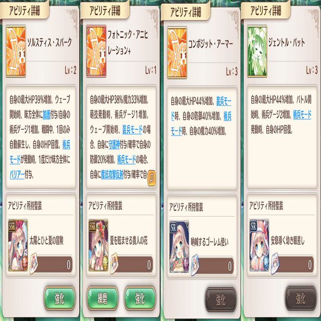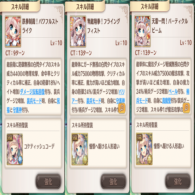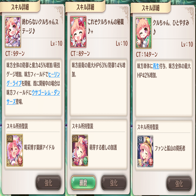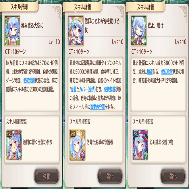 萌技は前衛回復と敵攻撃です。全体回復萌技はこのSR聖装しかありません。