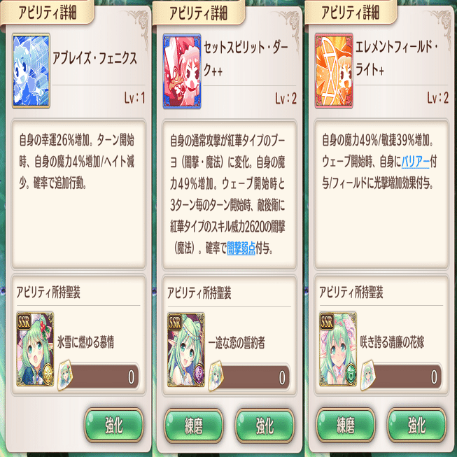 深憶聖装はベアトリーチェが属性一致。攻撃タイプも一致してて嬉しい限り