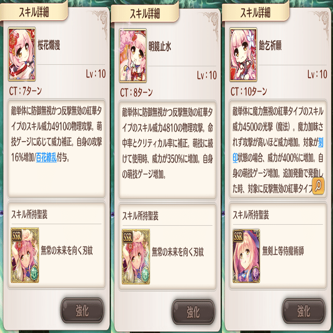 秘跡聖装と比べると、スキル・萌技は単体攻撃ばっかりだし
