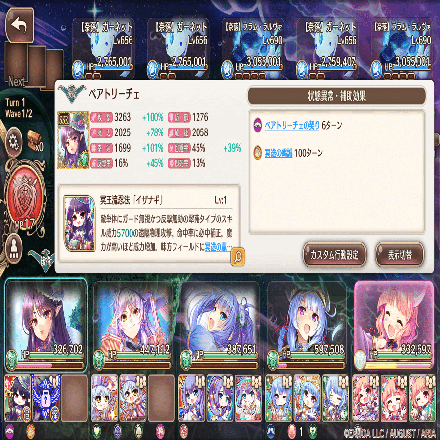 PT構成キャラが違う為、こちらも若干パラメータが変化してます。