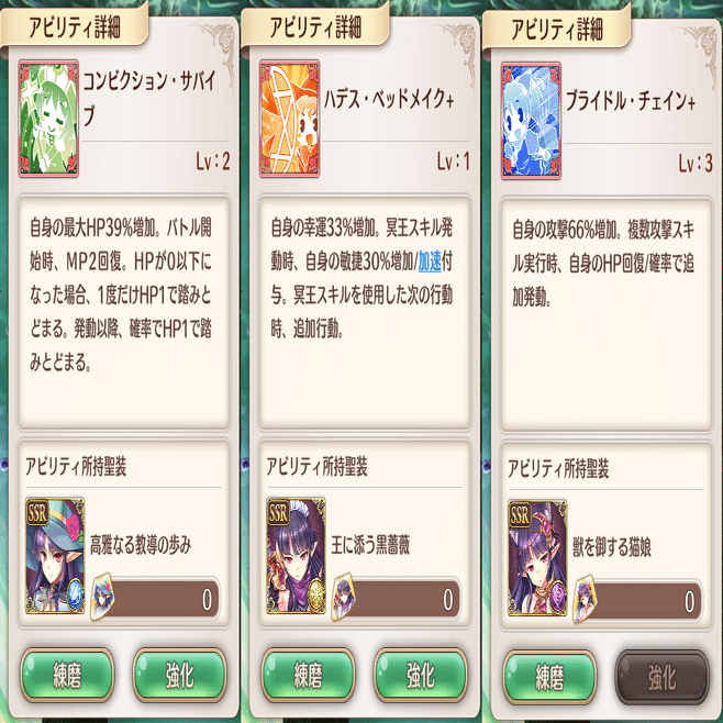 真ん中は冥王スキルを使ったら消費量の半分が返って来るアビリティ。