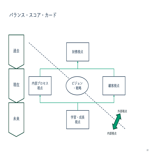財務視点:財務的な成功をどのように測定するかを示します。これは通常、収益成長、利益率、株主価値の向上など、金銭的な指標を用いて評価されます。