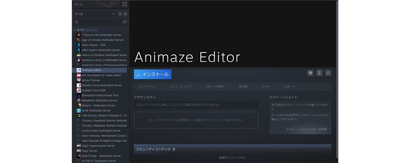 「Animaze本体と一緒にAnimazeエディターもインストールされてるのかな?」って思いましたが、Windows上にはそれらしいものは無く、Steamのストアでも検索したけどそこにも出てきません。