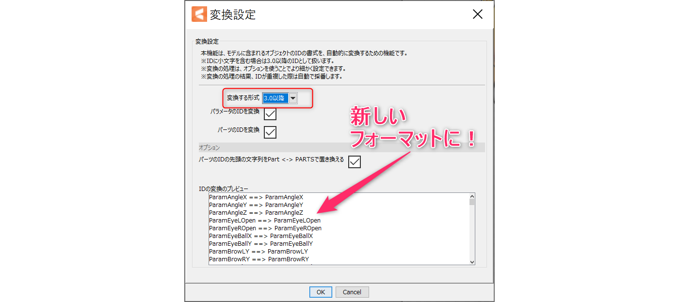 そして、【変換する形式】を「3.0以降」に。