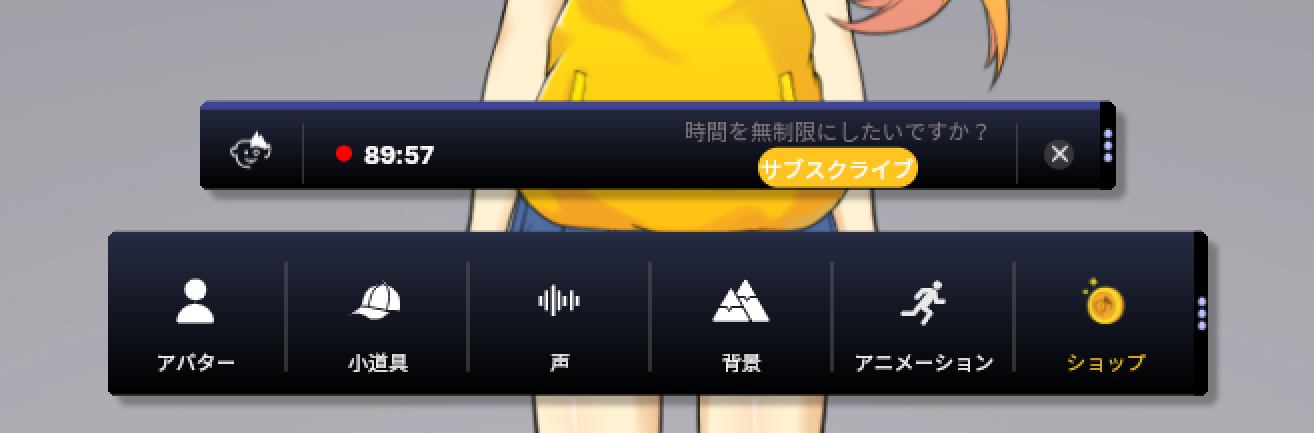 無料版の場合、バーチャルウェブカメラに1セッション90分っていう制限があるので、長時間配信してる人だと90分毎にポチポチしないといけないかもですね。 あと、ウォーターマークも表示されて邪魔ですね。