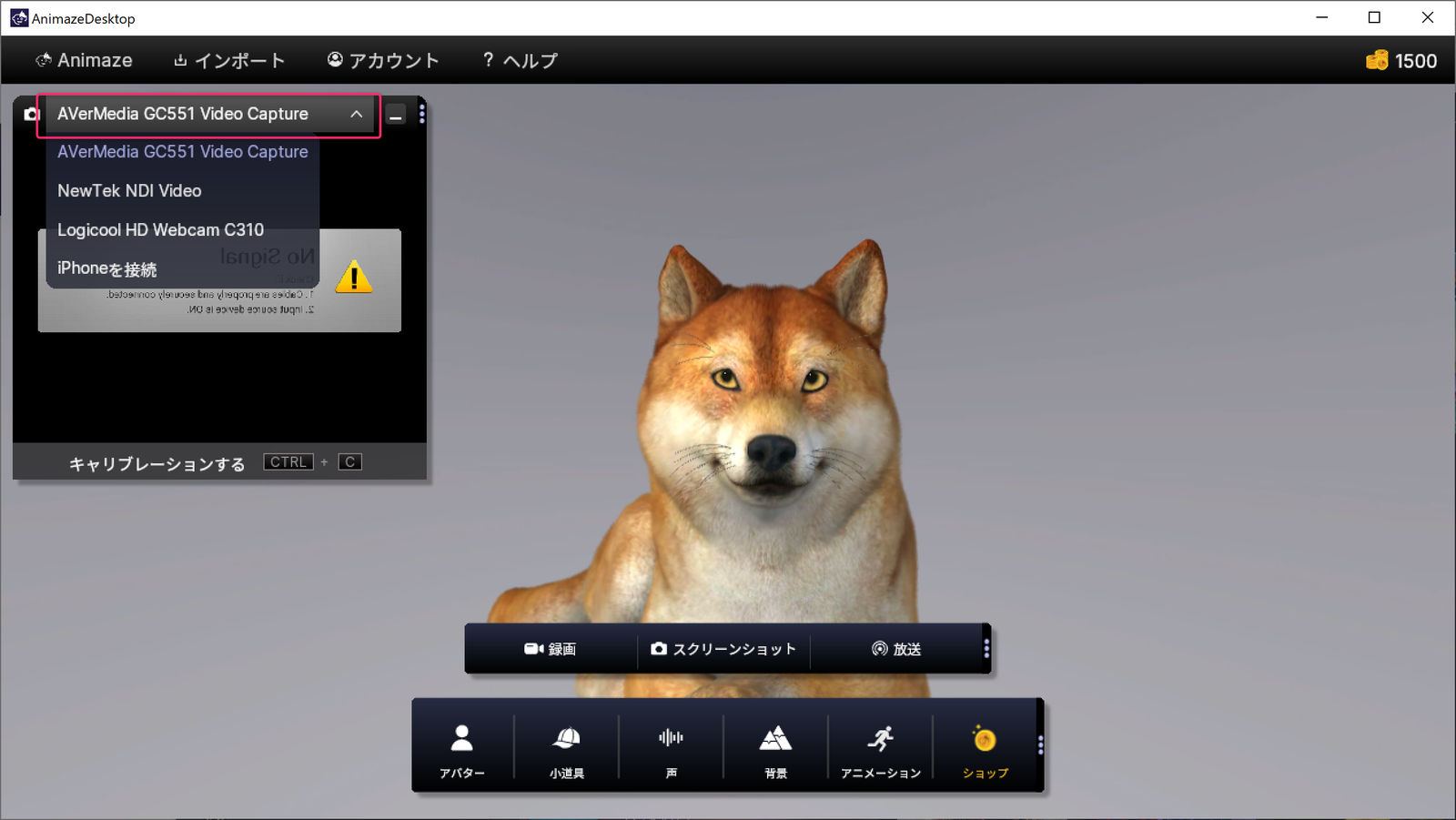 Animaze本体ではいろいろ表示されてるGUIを消せそうにないから、本体を直接キャプチャできないっぽいんですよねぇ。