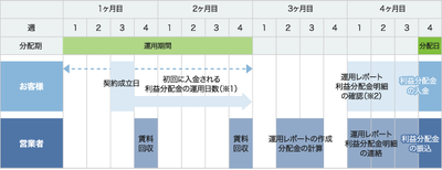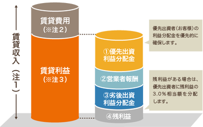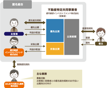 投資家は、営業者が募集するファンドへ出資をしていただくことで、その出資割合に応じて、対象となる不動産事業から得られる利益の一部を分配金として受け取ることができます。