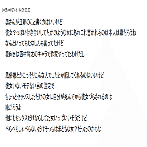 私の書いた物をどうでも目にしたくない、という西村ファンの気持ちも分からないではない。