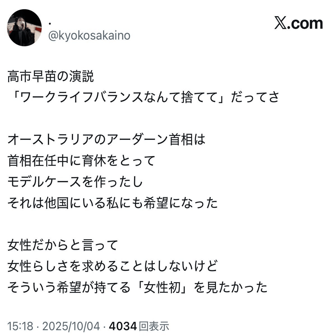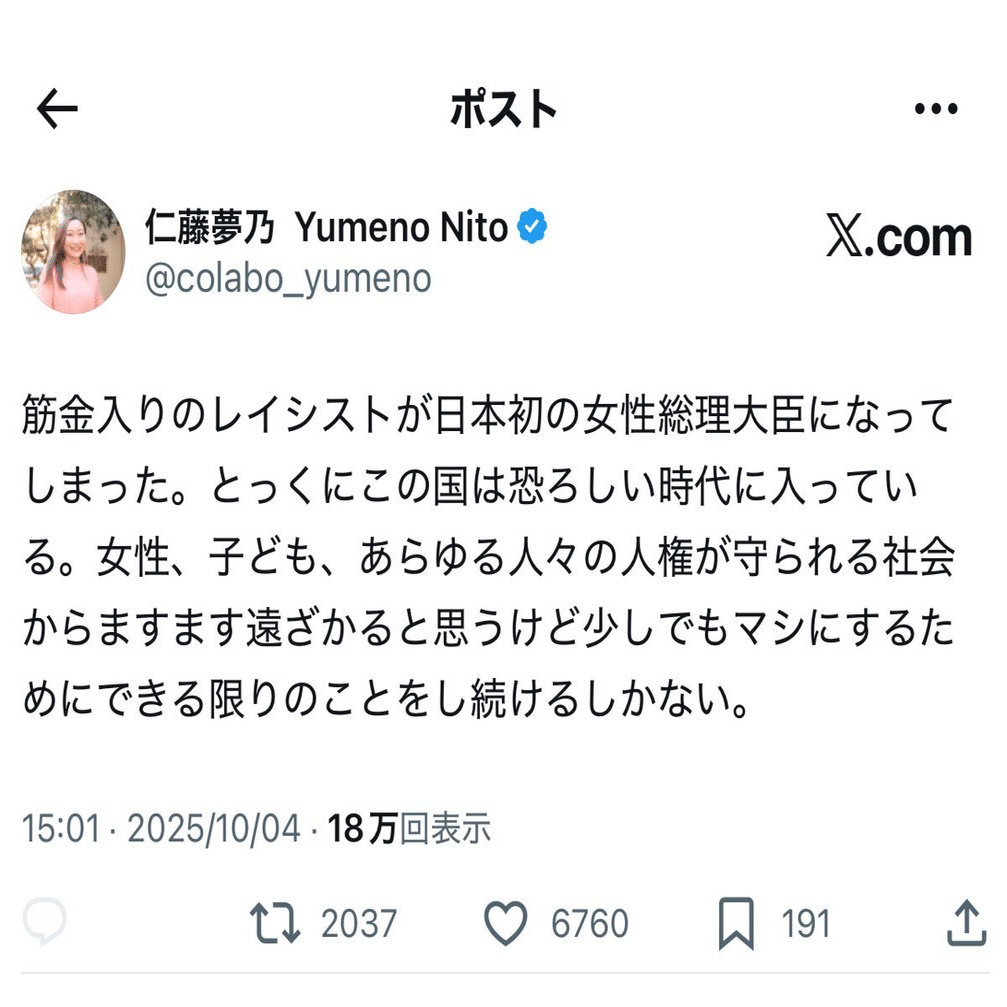 — 山尾志桜里 (@ShioriYamao) October 4, 2025