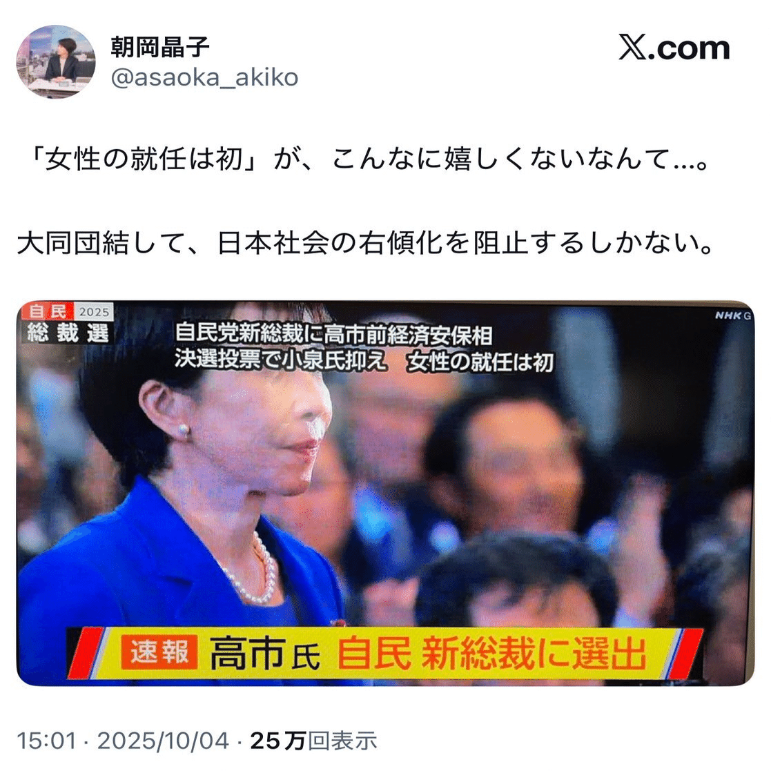 — ふっちゃん@anti-racism (@ashitawawatashi) October 4, 2025