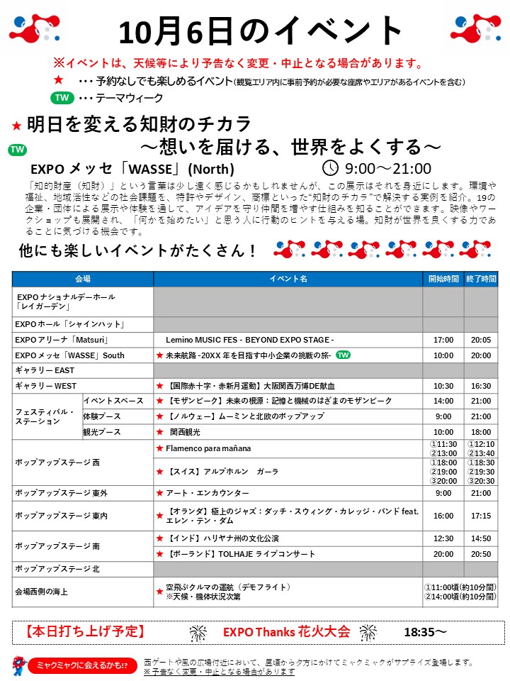 10月6日(月)の万博情報です