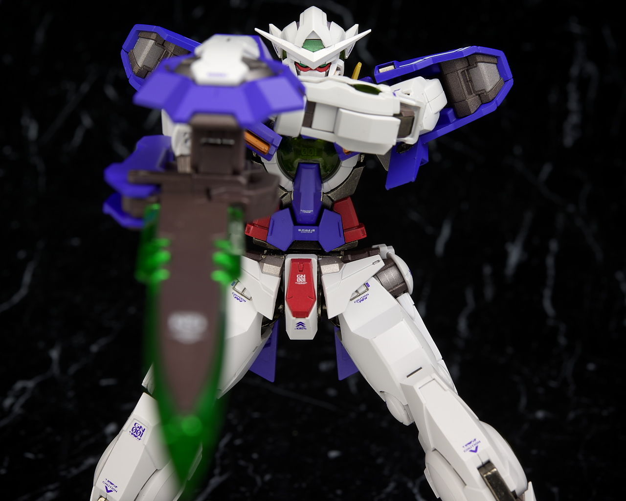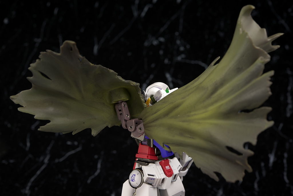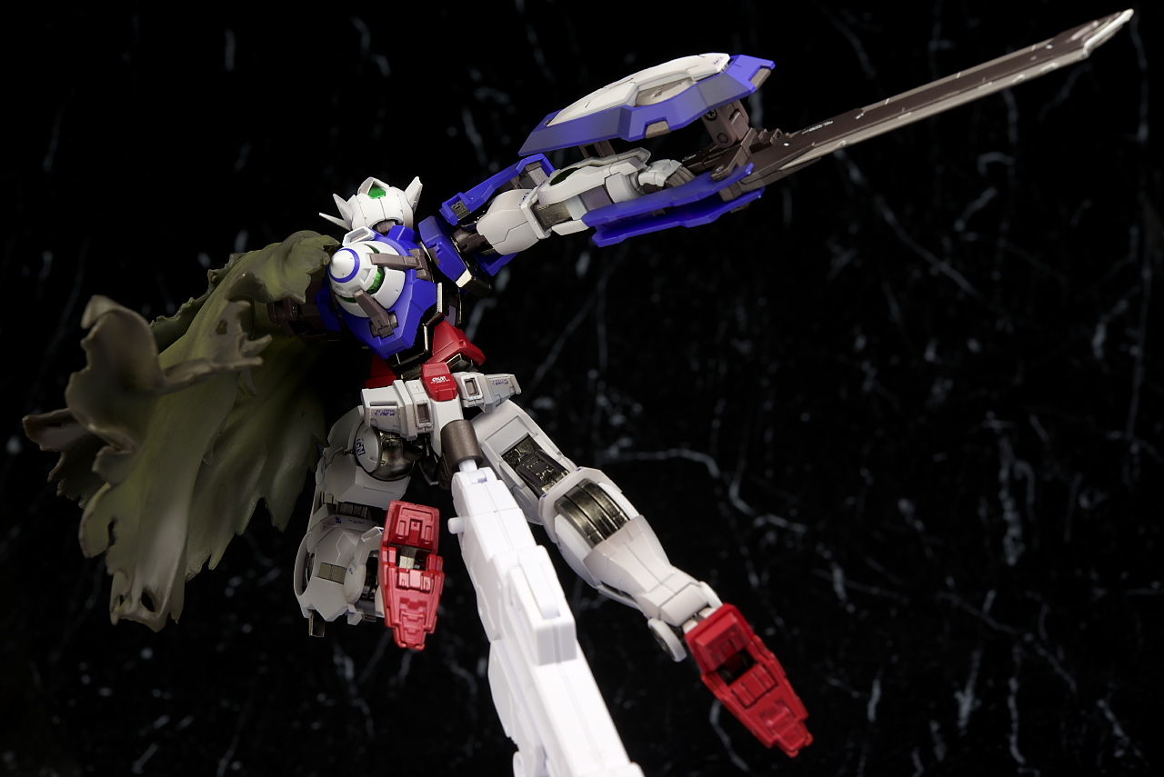 全身。同じ機体なので基本的な作りはエクシアと共通。ただ各部のダメージ表現やマントなど非常に手の込んだ仕上がりに。