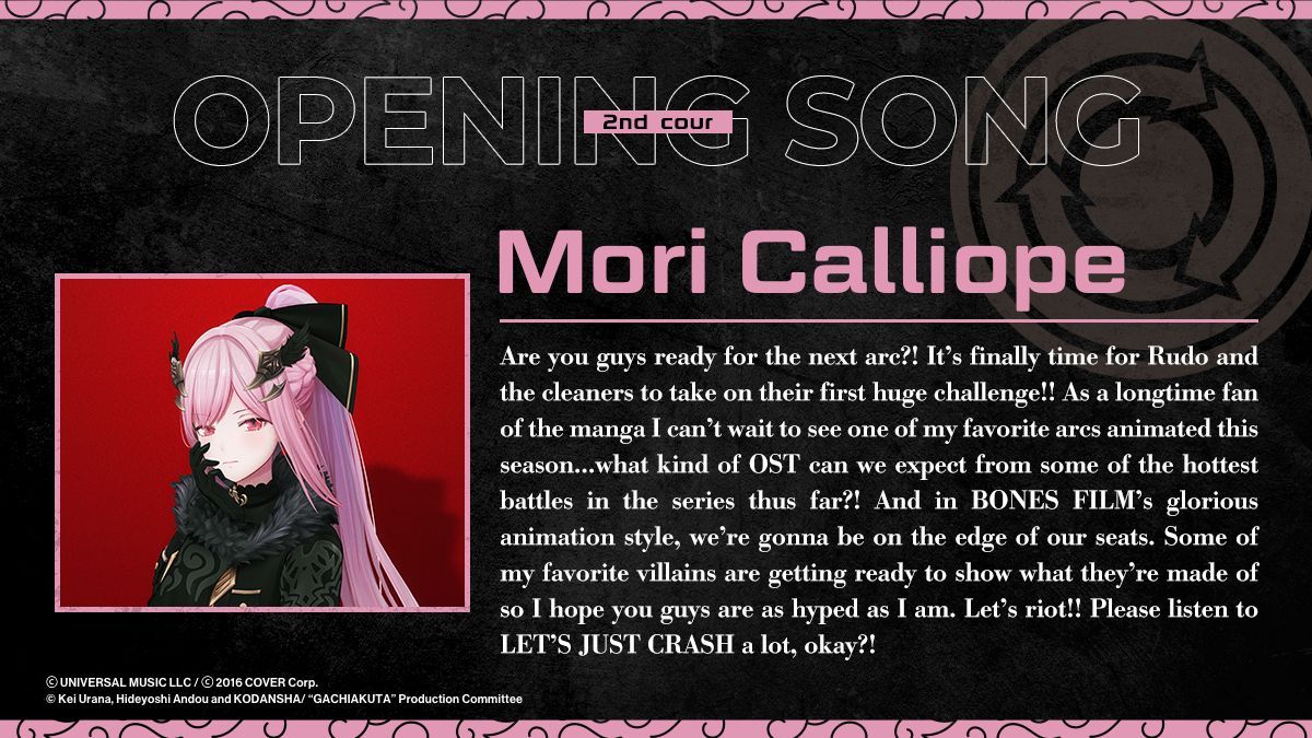 The OP theme for the Second Cour of the Anime Series #Gachiakuta is “LET’S JUST CRASH” by #MoriCalliope!