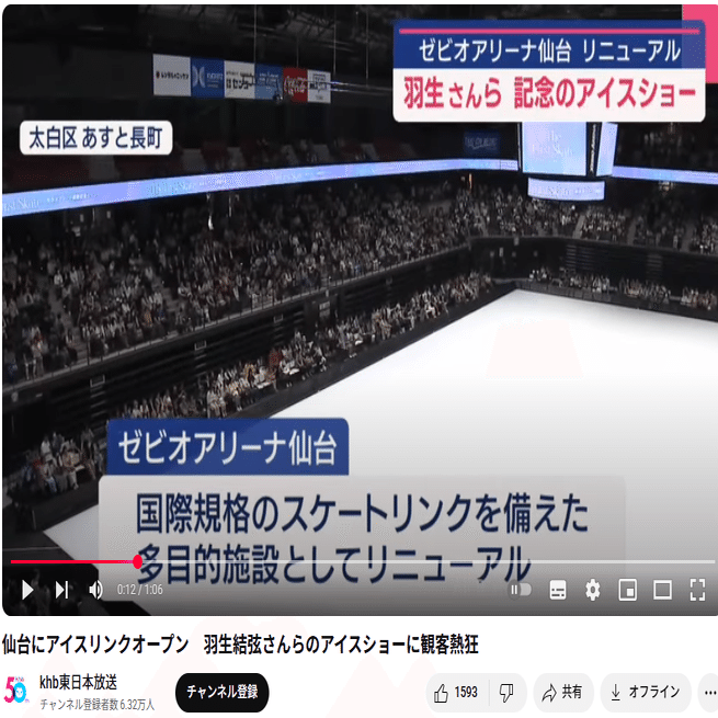 共同通信だけは、その満員御礼の会場映像を流さなかったんです。代わりに配信動画で流れたのは、開場直後なのかな?製氷作業中の”観客がまばら”な会場の映像だけ。