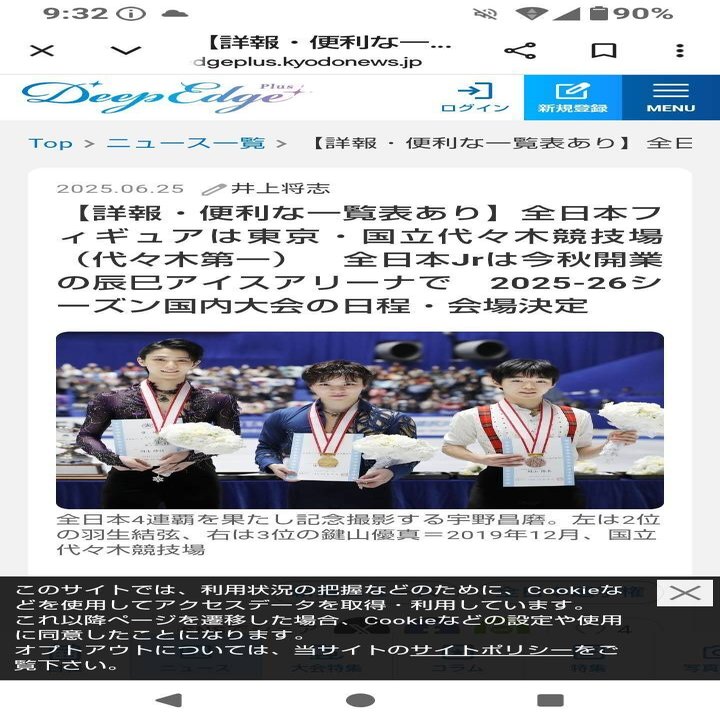 たとえば最近、6/25に共同通信のフィギュアスケート専門サイト「Deep Edge Plus」に載せた2025-2026シーズンの日程が決まった旨のニュースで、なぜか、添えた写真が2019全日本の男子表彰台写真だったというのもね、嫌味でしたよね!!