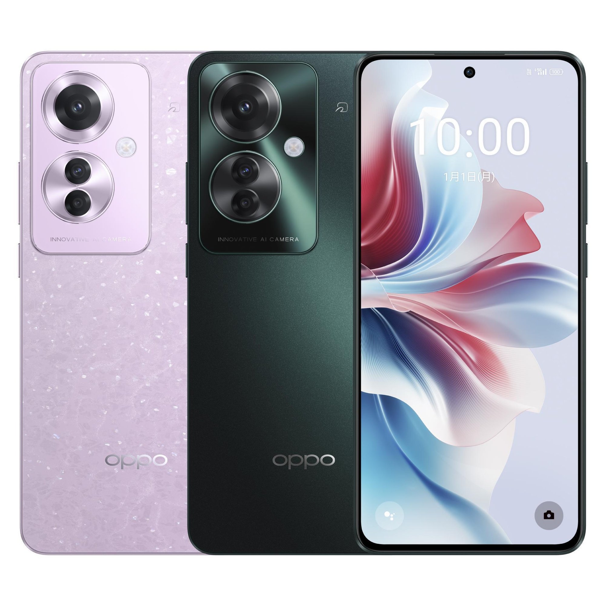 カラーはダークグリーンとコーラルパープルの2色展開。コーラルパープルには珊瑚やダイヤモンドの多層テクスチャー加工、ダークグリーンにはOPPO独自の「OPPO Glow」加工が施され、カラーによって異なる質感を楽しめます。便利な側面ボタン配置: