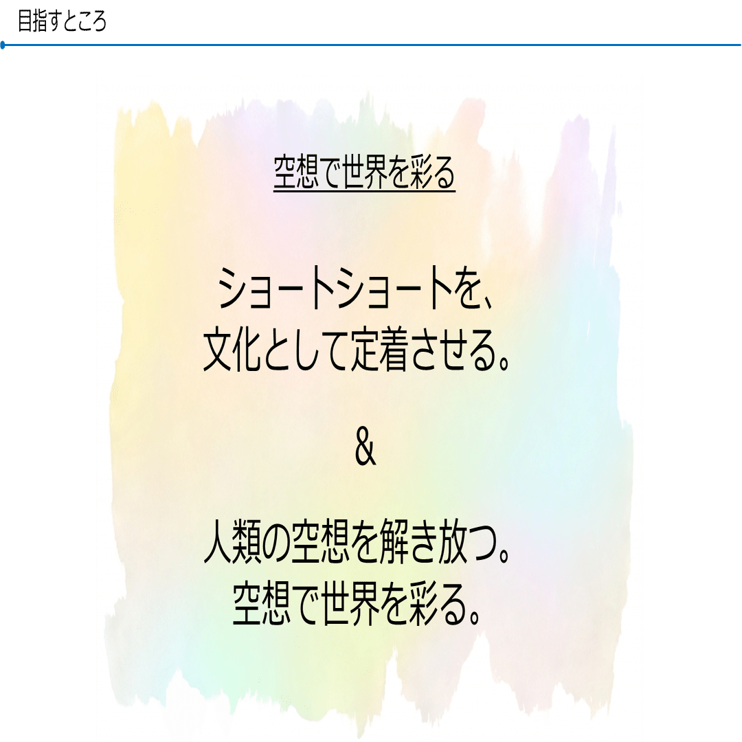 もう少し詳細をいうと、まず、「ショートショートを文化として定着させる」ということを、一つの目標として掲げています。