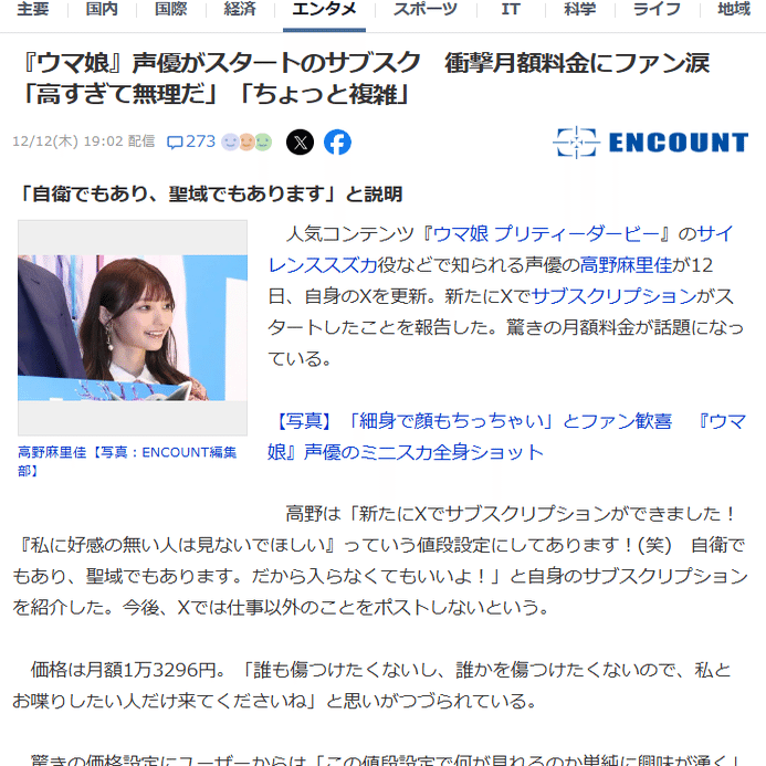 Yahooニュース で 高野麻里佳 氏が載っていたので予定より早めて公開します。