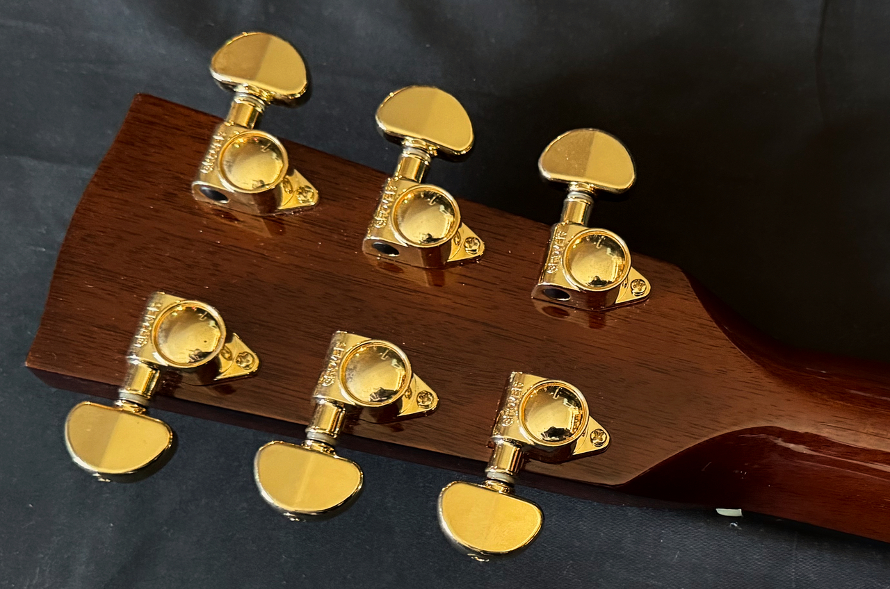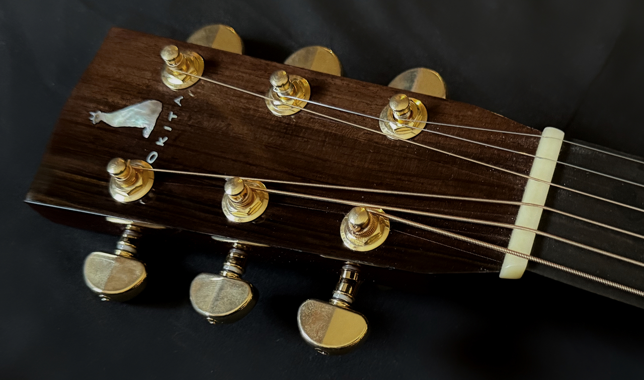 本器のボディサイズは、ドレッドノートベースのラウンドショルダー。OKITA GUITARSラウンドショルダーモデル、3号機が完成いたしました!!トップにはプレミアムグレードのアディロンダックスプルースを使用、そしてサイド&バックには、沖田正和秘蔵の極上サペリマホガニー(サペリ)を使用、そして通常のメーカー、製作家には真似のできない重厚なボディーとして組み上げられております!!極上ホンジュラスマホガニーのネックにトップ、サイド、バックとが沖田正和の手によるスペイン式ネックジョイント方式で見事に組み合わさり通常では考えられないバランシングと剛性の高い音の出力、アディロンダックスプルースならではのトルクのある鳴りと音量、説得力のある響き、魅力のサウンドを見事に出力、実現しております。沖田正和独自のスキャロップドXブレーシングにより、スキャロップとは思えぬ程の厚みのあるサウンドを出力いたします。またOKITA GUITARSのさらなる特徴となる生音そのものにおいても、抜群のバランシング、絶妙なコード感の、正確なピッチ、その素晴らしさと完成度の高さにで、ライブ、録音時とあらゆる音楽ジャンル、奏法、運用においても安心して音楽を委ねることを可能にした唯一無二の夢のギターです!!!