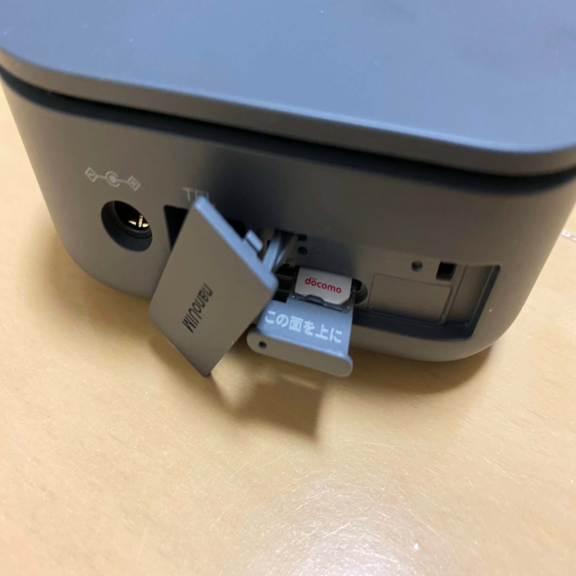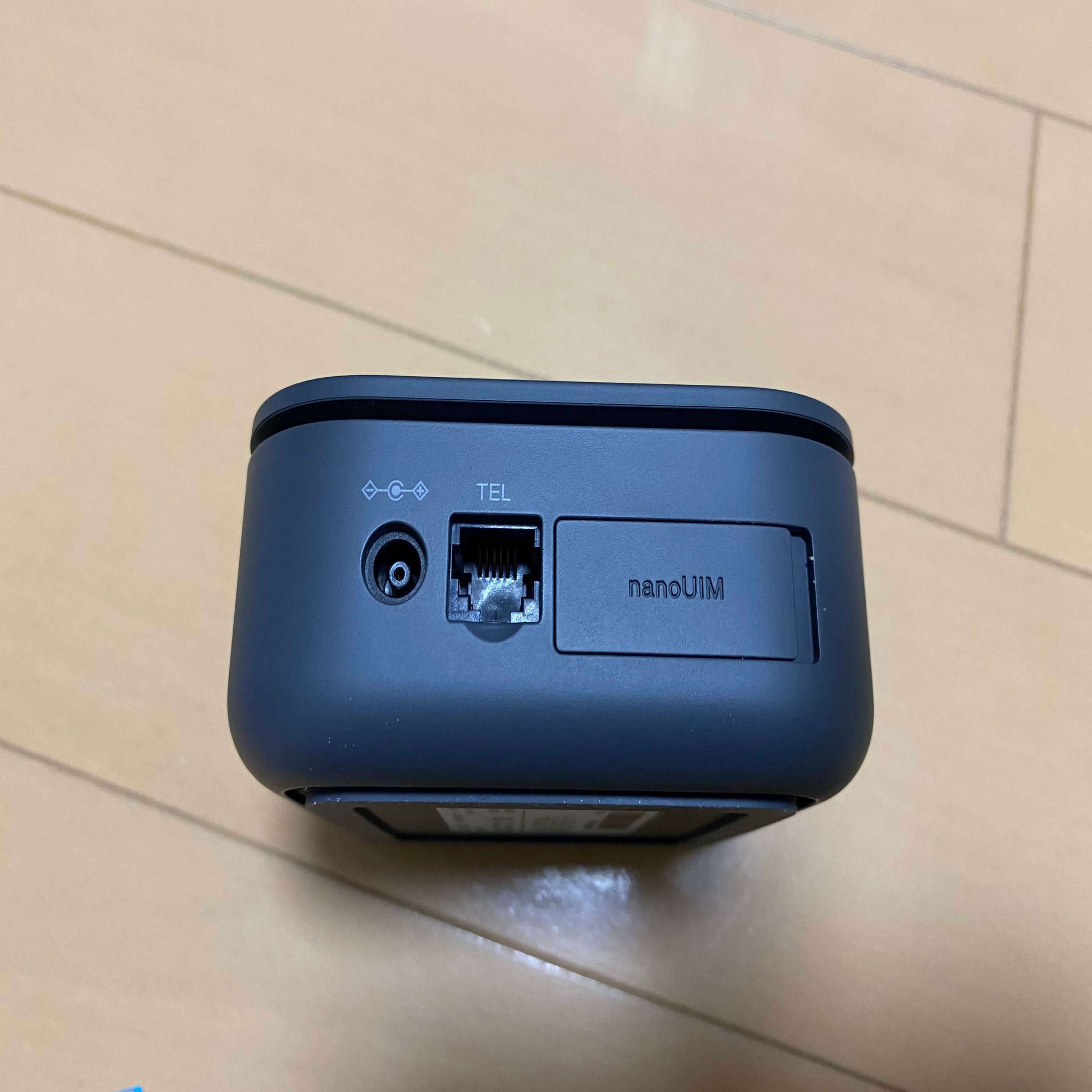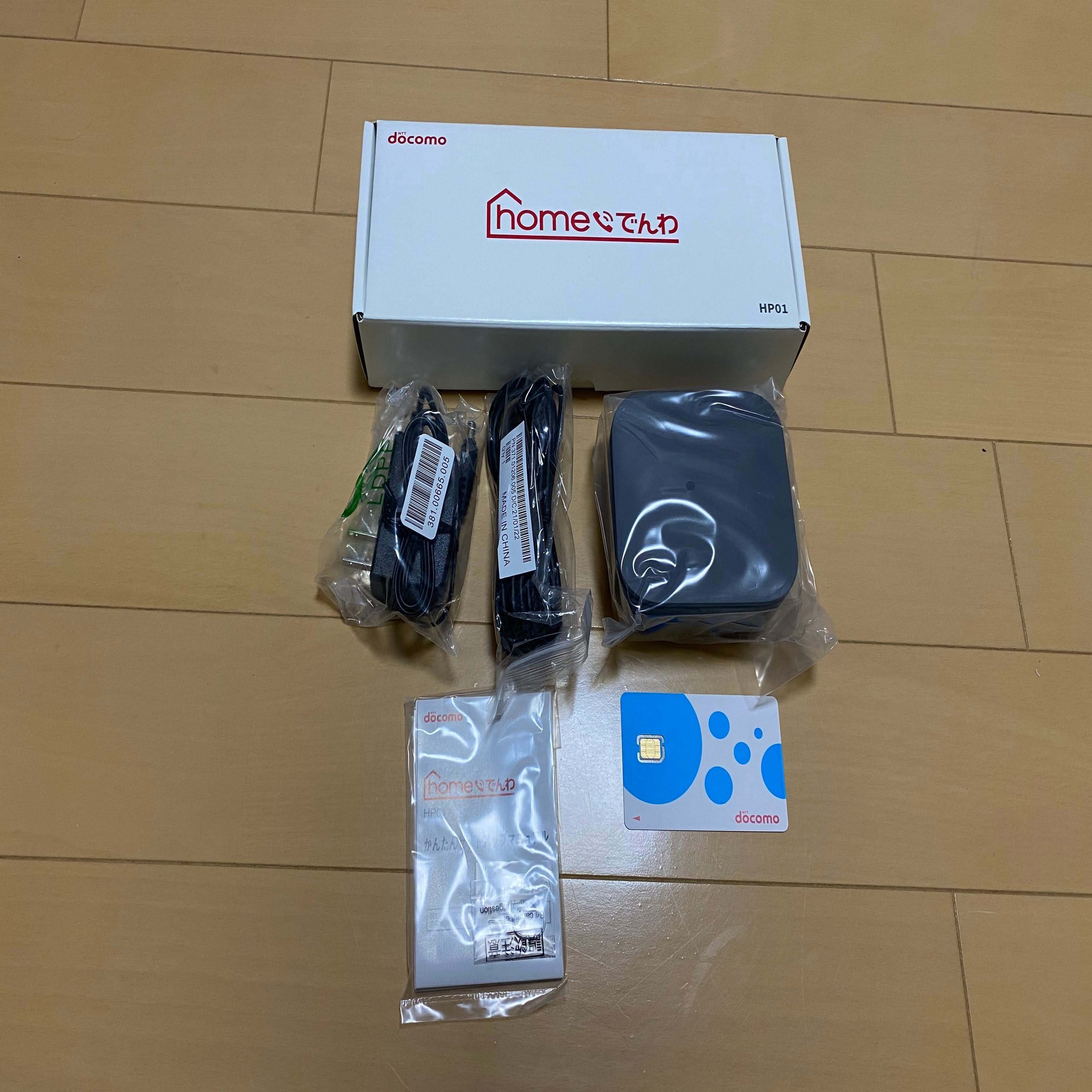 箱の中にあるのは本体の他、電源ケーブル、電話線、SIMカード、マニュアル、SIMカードを入れるときに使うピンです。