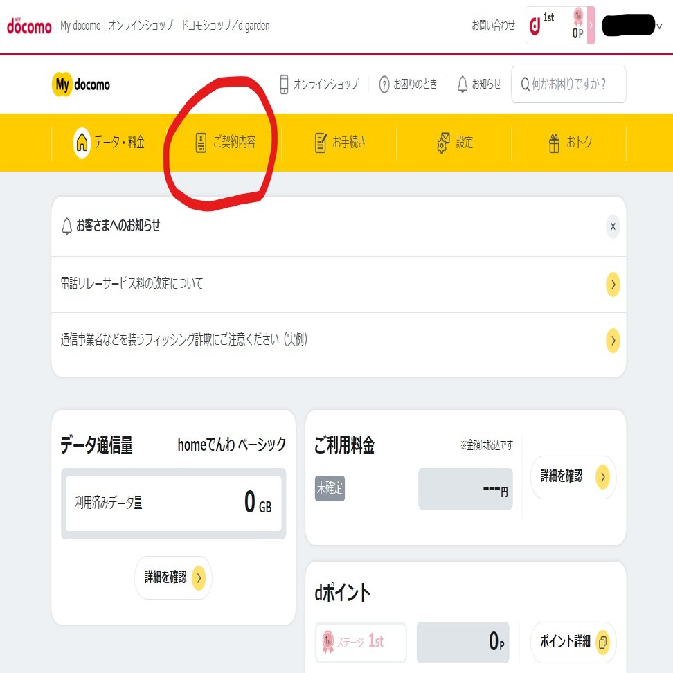 ドコモには「My docomo」というオンライン手続きサイトがあります。回線に紐づくdアカウントでログインすると契約内容を見ることができるほか、一部のサービス等の設定ができます。