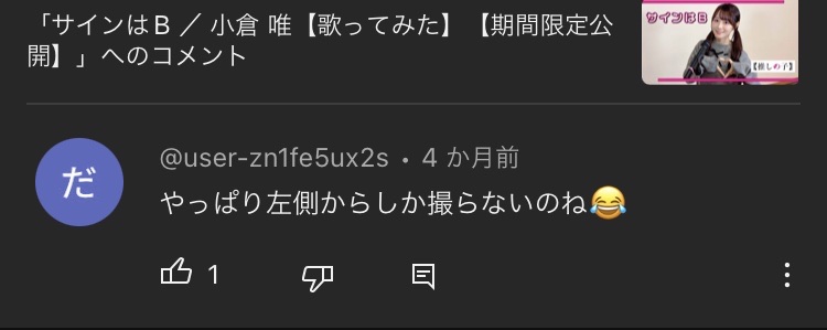 小倉唯の動画にもコメントしてる