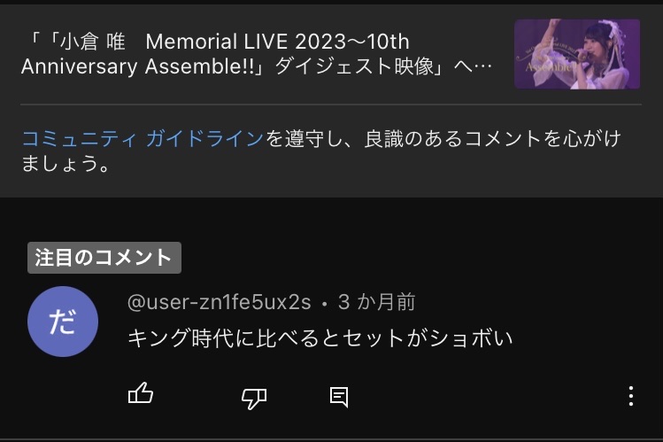 ぴだの小倉唯チャンネル6個目のコメント見つけたけど大したことなかった