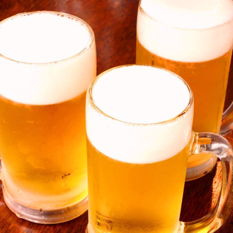 当店はビールももちろん飲み放題!スタンダードでは金麦が飲み放題で、グレードアップして頂くとザ・プレミアム・モルツも飲み放題可能に!コース欄を是非ご覧ください!