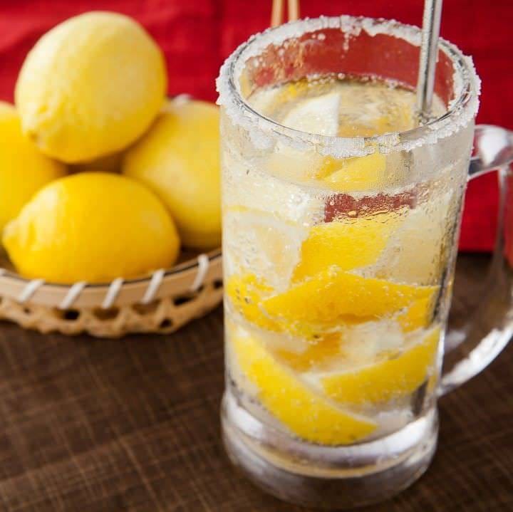 すっぱうまいかちかちレモンサワーも人気!ゴロゴロ入ったレモンをマドラーでかちかちつぶしながら、レモンの旨味をダイレクトにお楽しみいただけます。暑い季節の塩分補給にもGood!