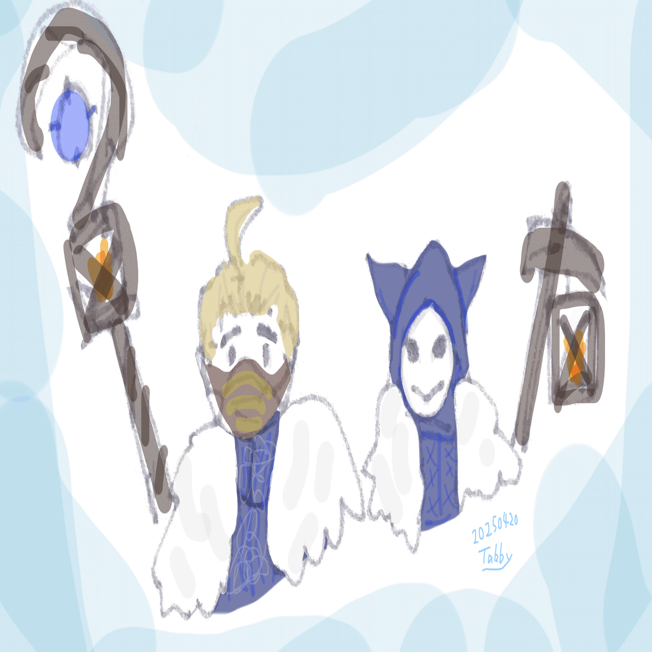 いつもの隠者。何度描いても服の構造を覚えられないので、資料なしで描くとぜんぜん違うデザインになってしまいます。物の形を覚えるのがどうしても苦手なんですよね、あれだけ毎日見てるのに……。猫教マークだけは見ながらでも描けません。なので隠者の後ろ姿を描けない。困った困った。