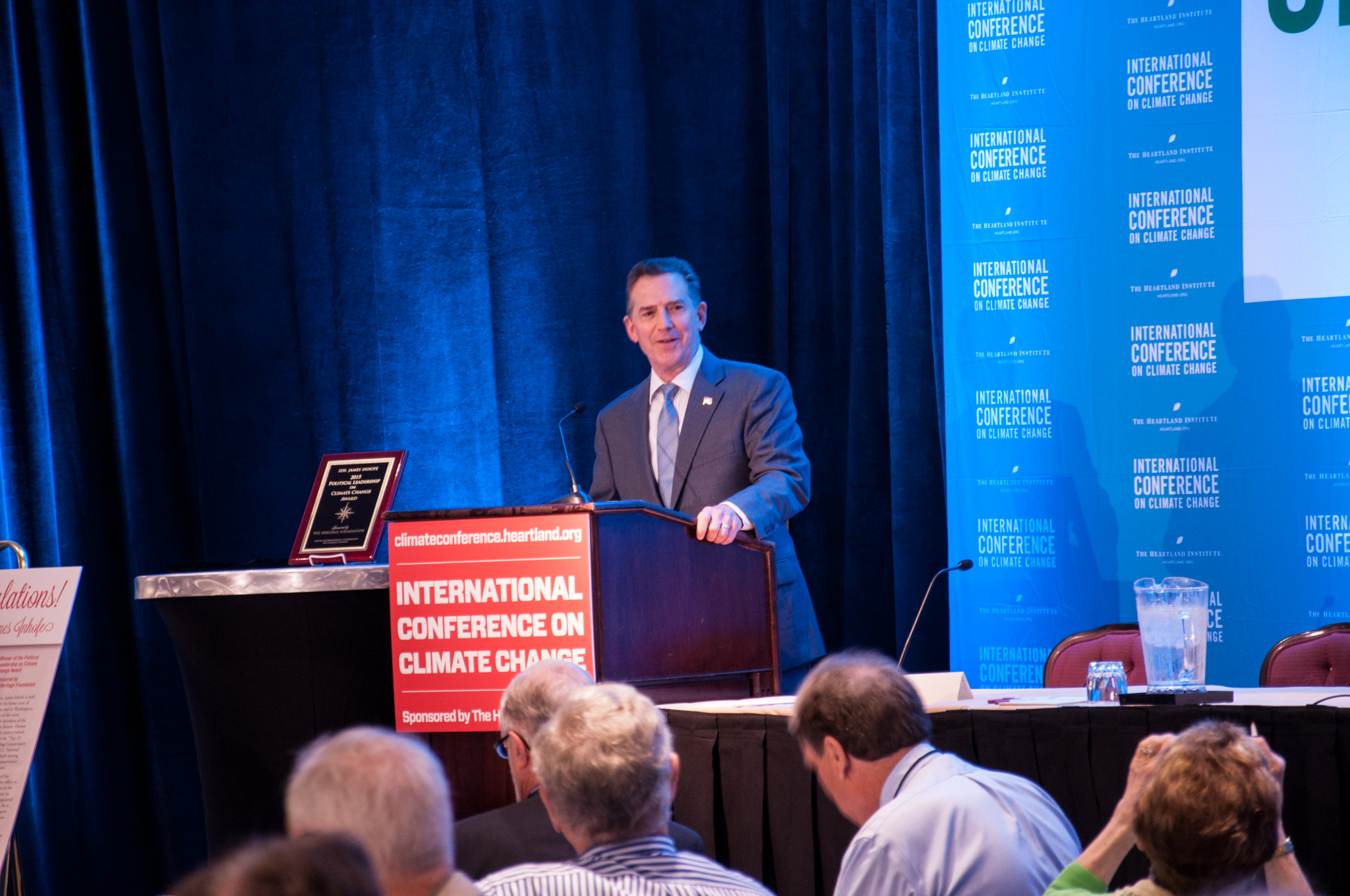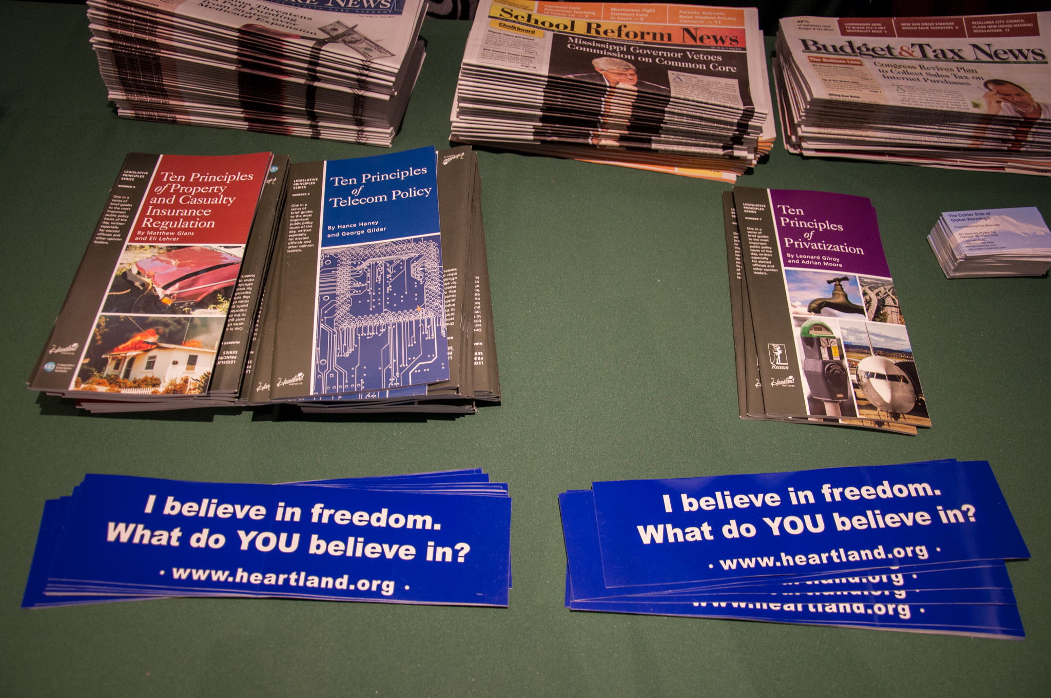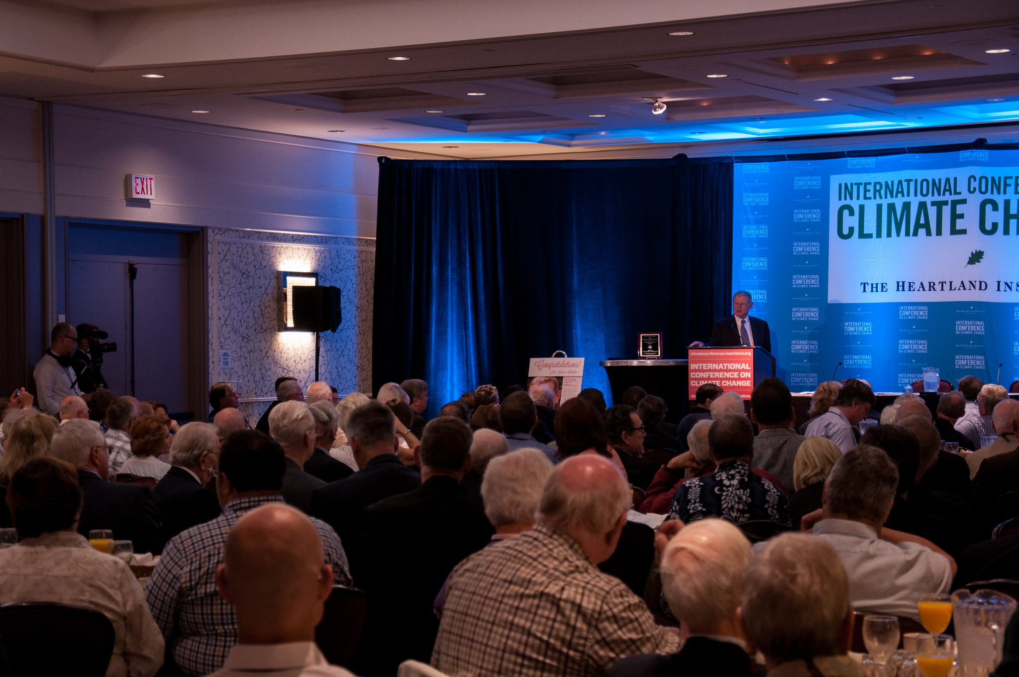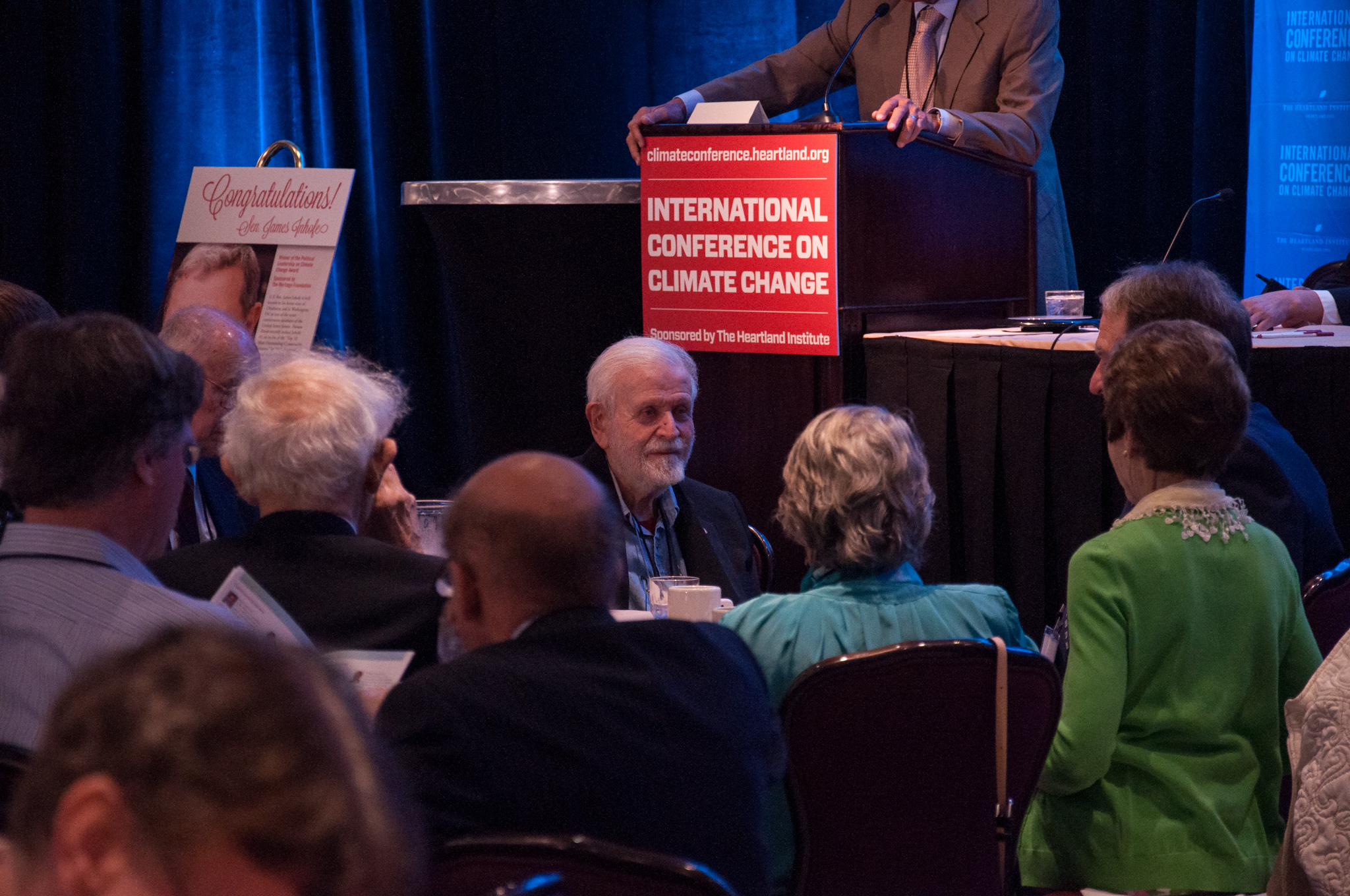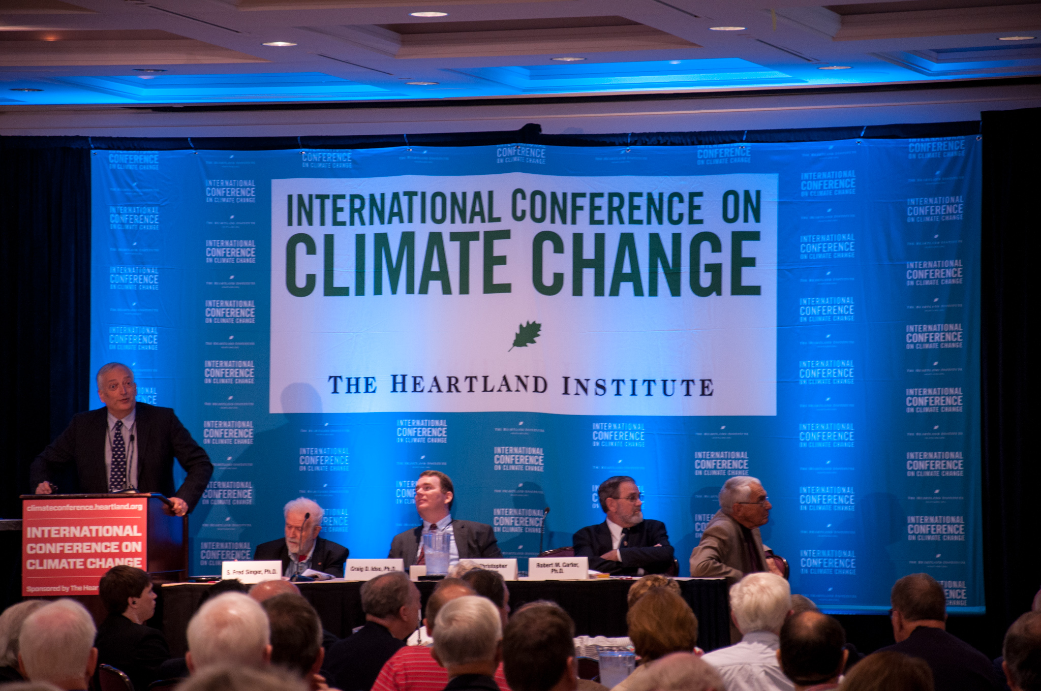 Steyn was one of many speakers at the libertarian Heartland Institute's 10th “International Conference on Climate Change,” a major event for climate science contrarians. The two-day conference, held in mid-June at the classy Washington Court Hotel just a few blocks from the US Capitol, had all the trappings of an academic conference, but you wouldn’t mistake it for a Geological Society of America meeting. Tables set up outside the hotel’s main ballroom hosted conservative advocacy groups and think tanks like CFACT, the Ayn Rand Institute, and the Heritage Foundation (which attracted visitors with a life-size cardboard cut-out of Ronald Reagan). The audience contained some meteorologists but seemed mostly composed of retired couples with an interest in politics, along with a handful of state legislators.