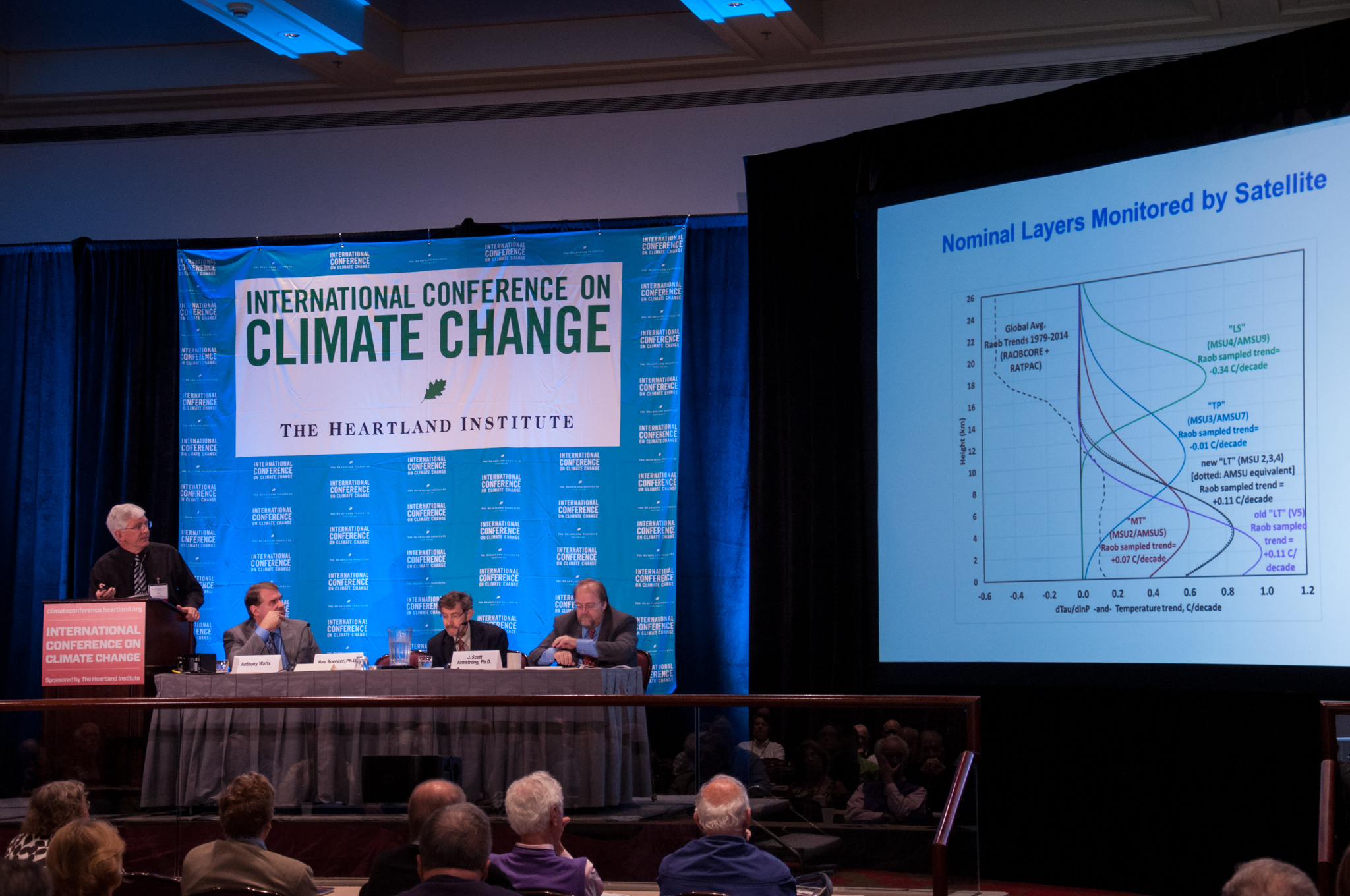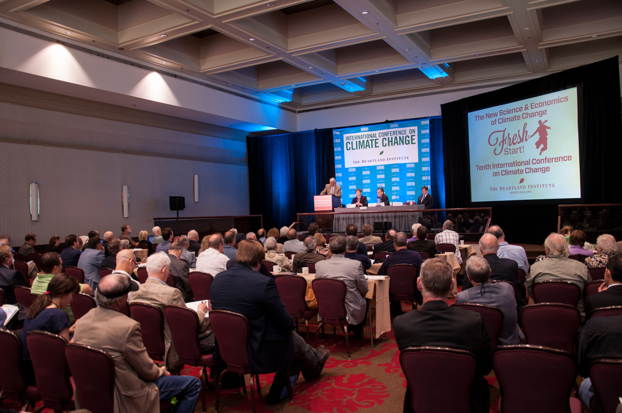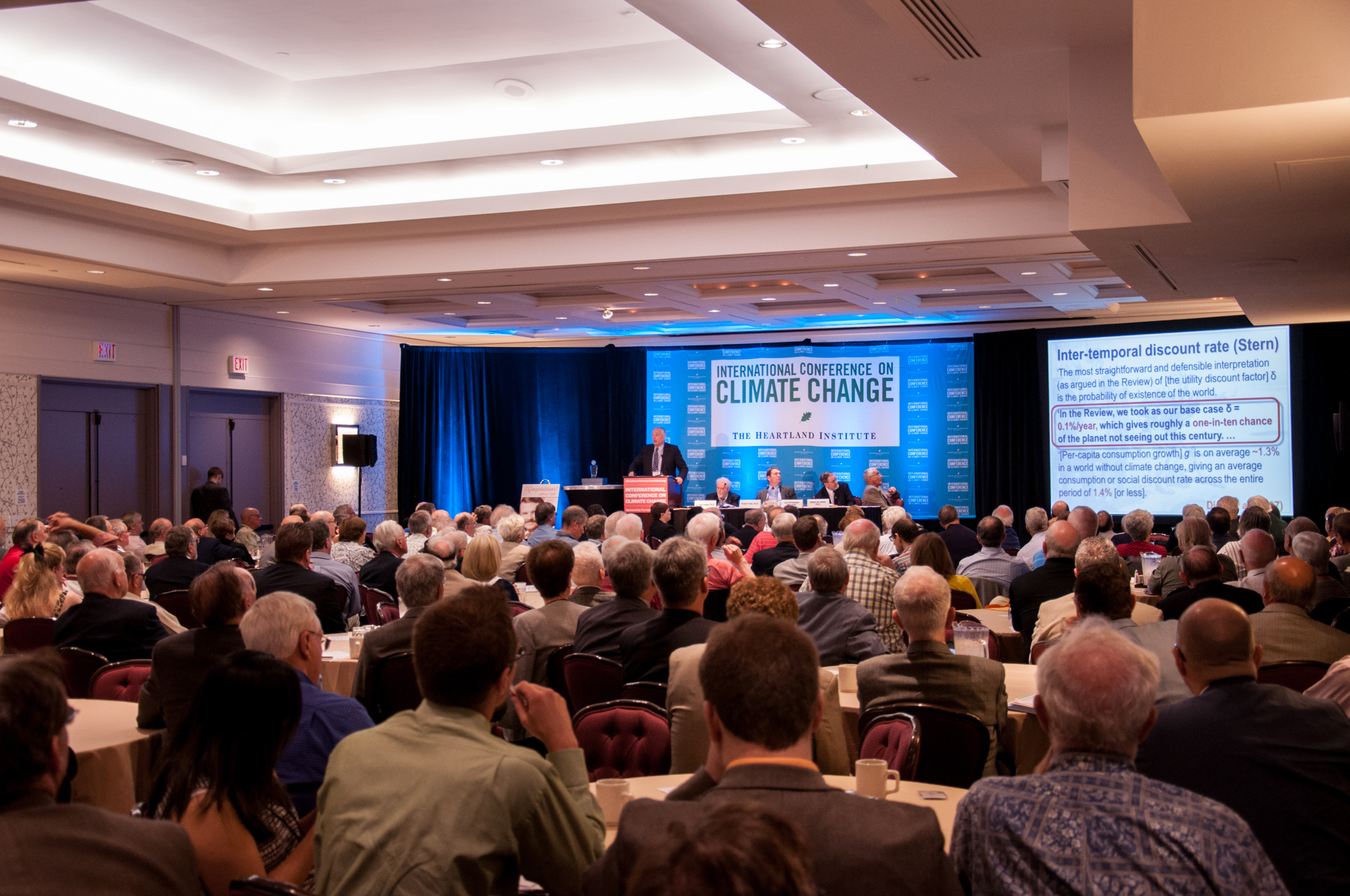 The goal was to gather speakers—who, organizers frequently reminded the audience, were some of the most famous and well-respected experts in the world—who could arm attendees with the information they needed to take the Good Fight back out to the streets. A small number of the talks presented research into climate science, but most were arguments against climate policy based on economic impacts. In other words, imagine the opinion pages of The Wall Street Journal plus a podium.