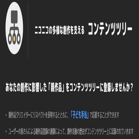 ニコニコに投稿された作品はしばしば「子作品」を生み出します これは自身の作品が二次利用、二次創作されたときなどに"産まれ"ます