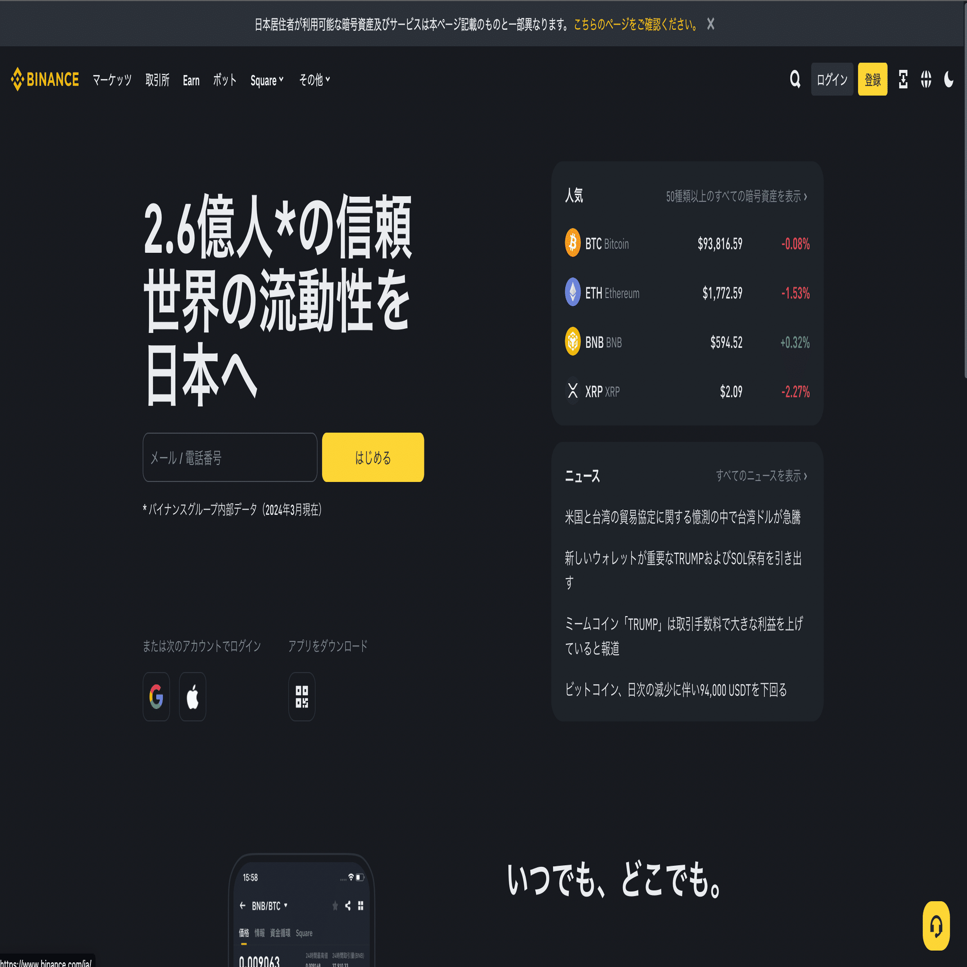 せっかくなのでバイナンスの口座を開設し、2400円の追加ボーナスもこの機会にいただきましょう!