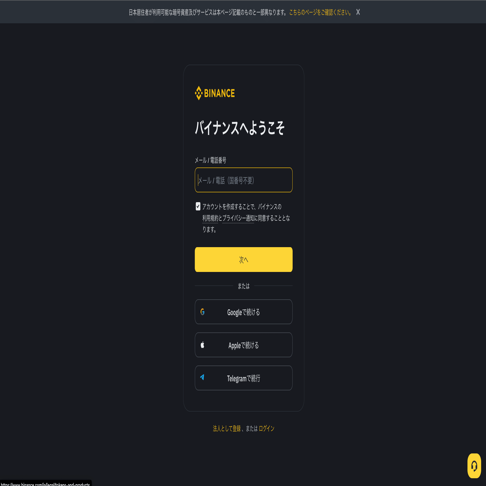 Binance Japanにログイン・アカウント認証を完了