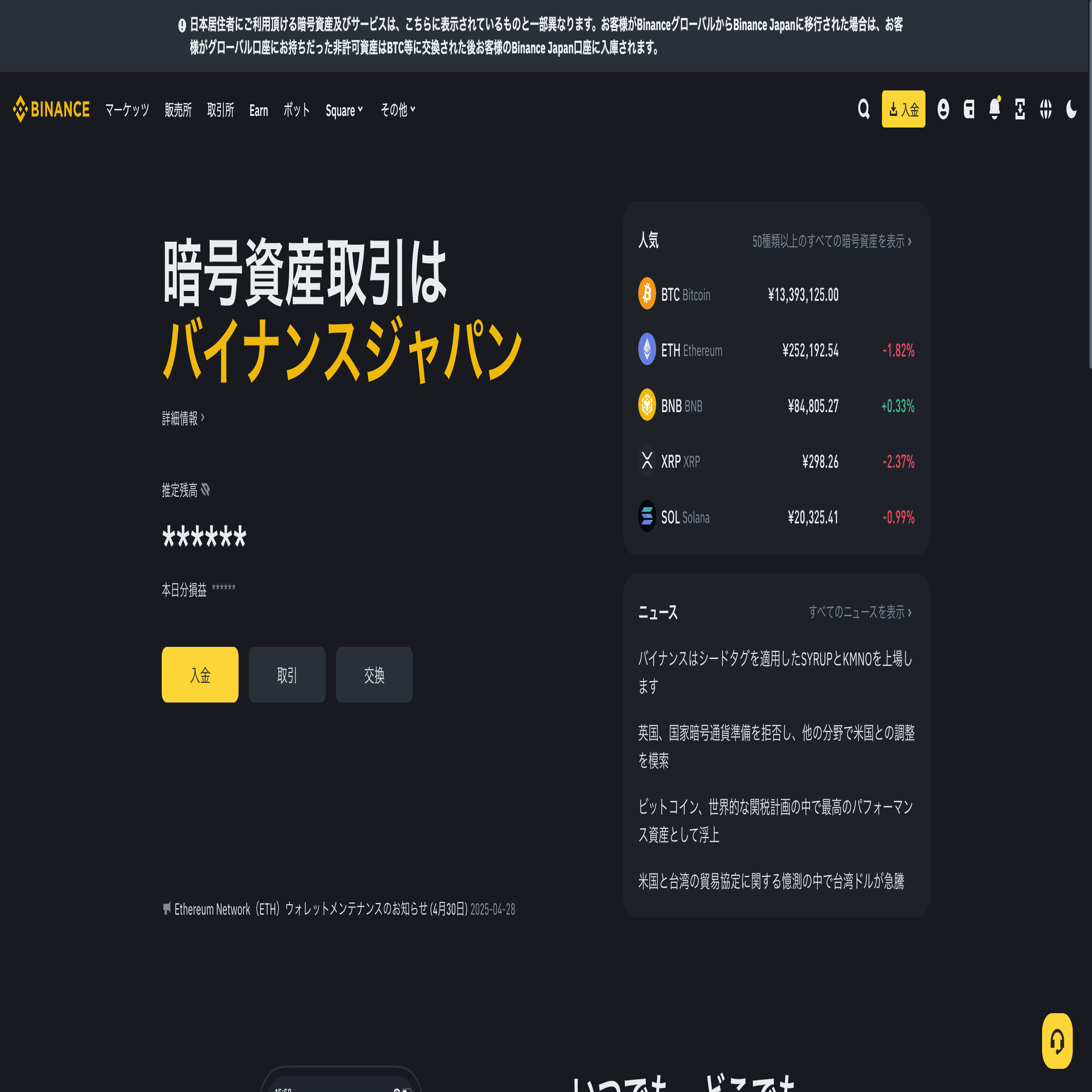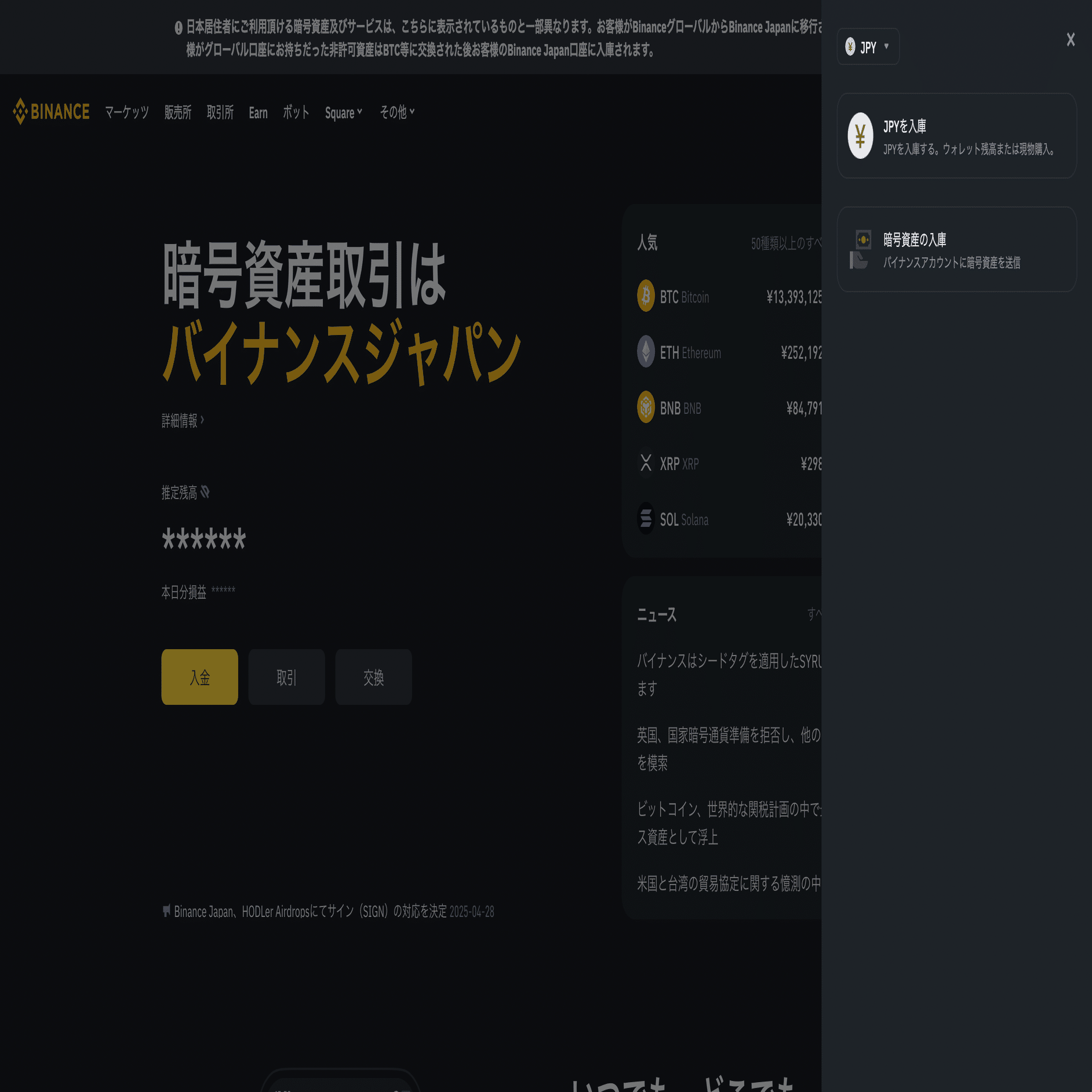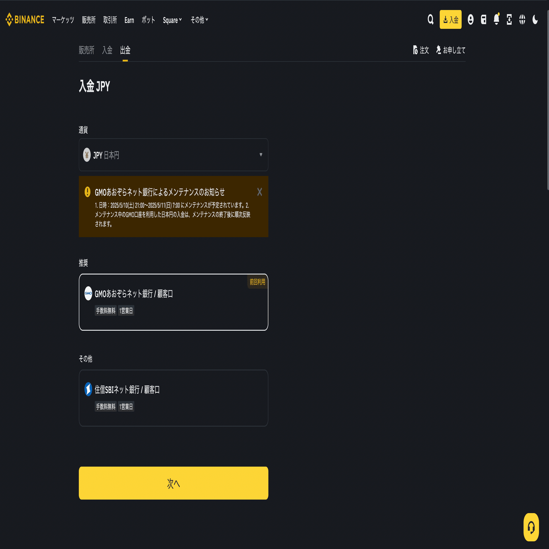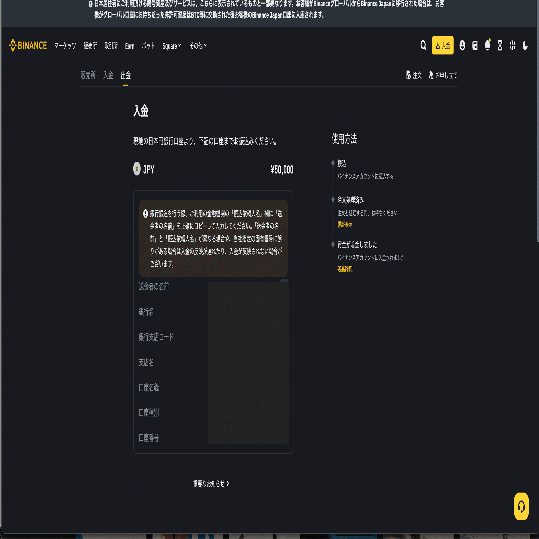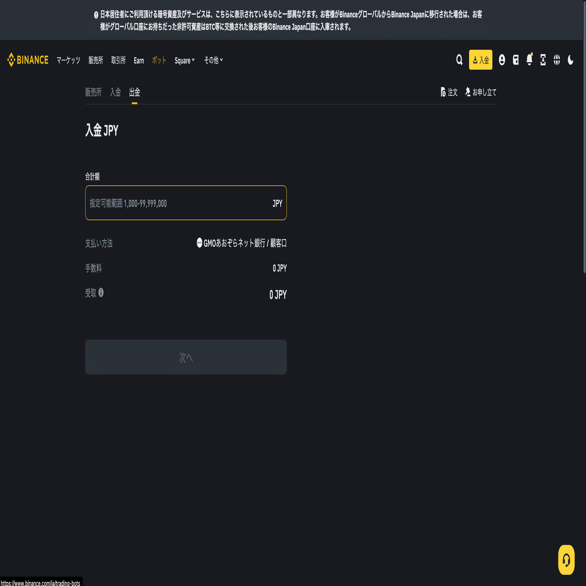 1. Binance Japanに日本円を入金する