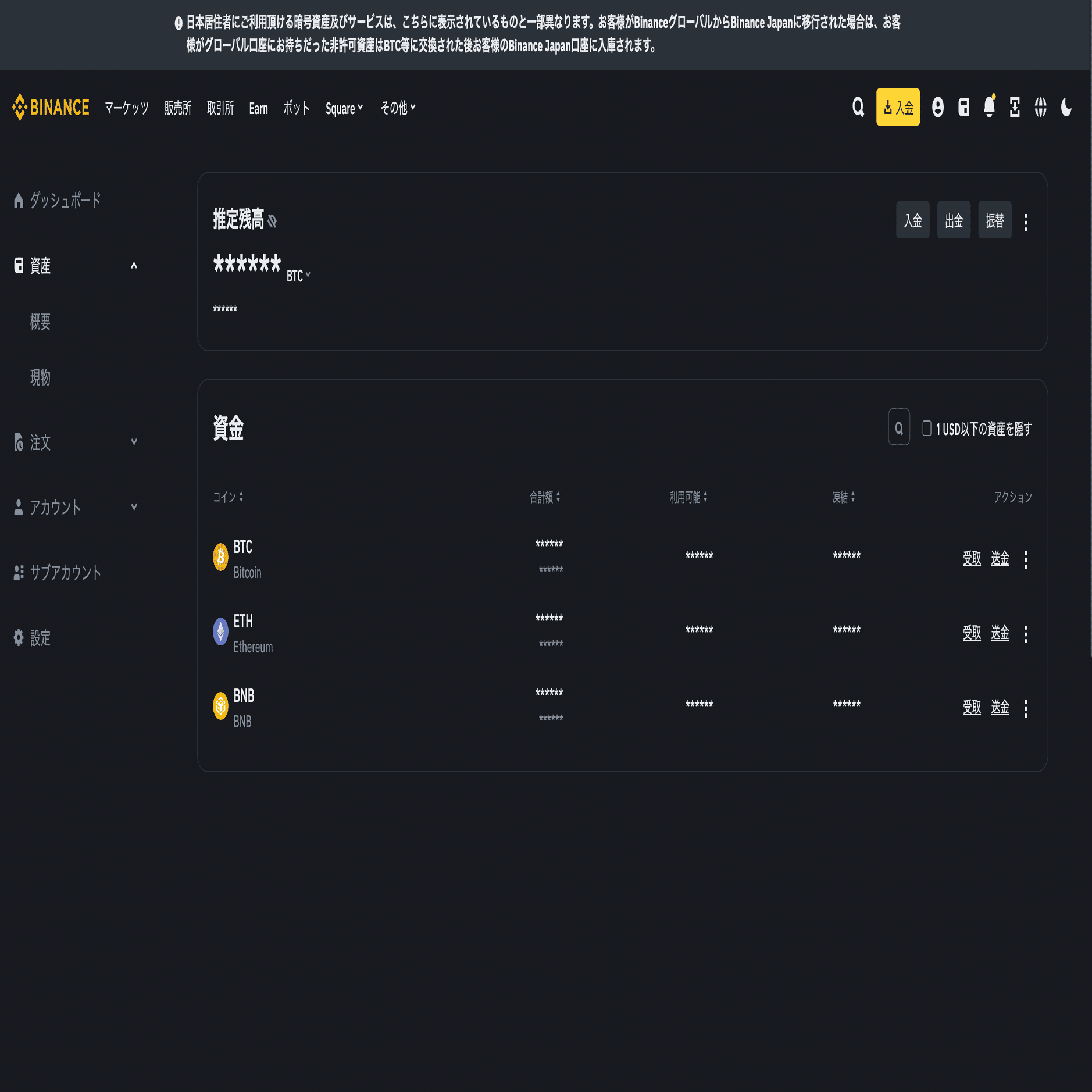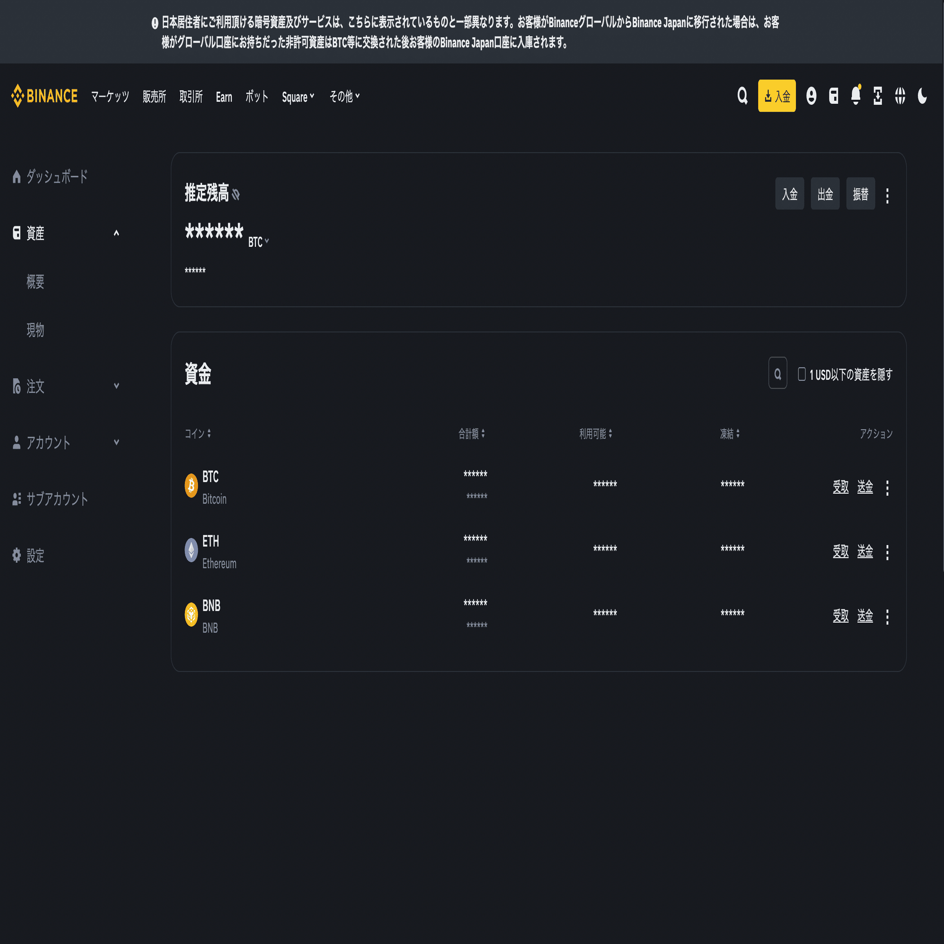 BinanceでBNBを購入