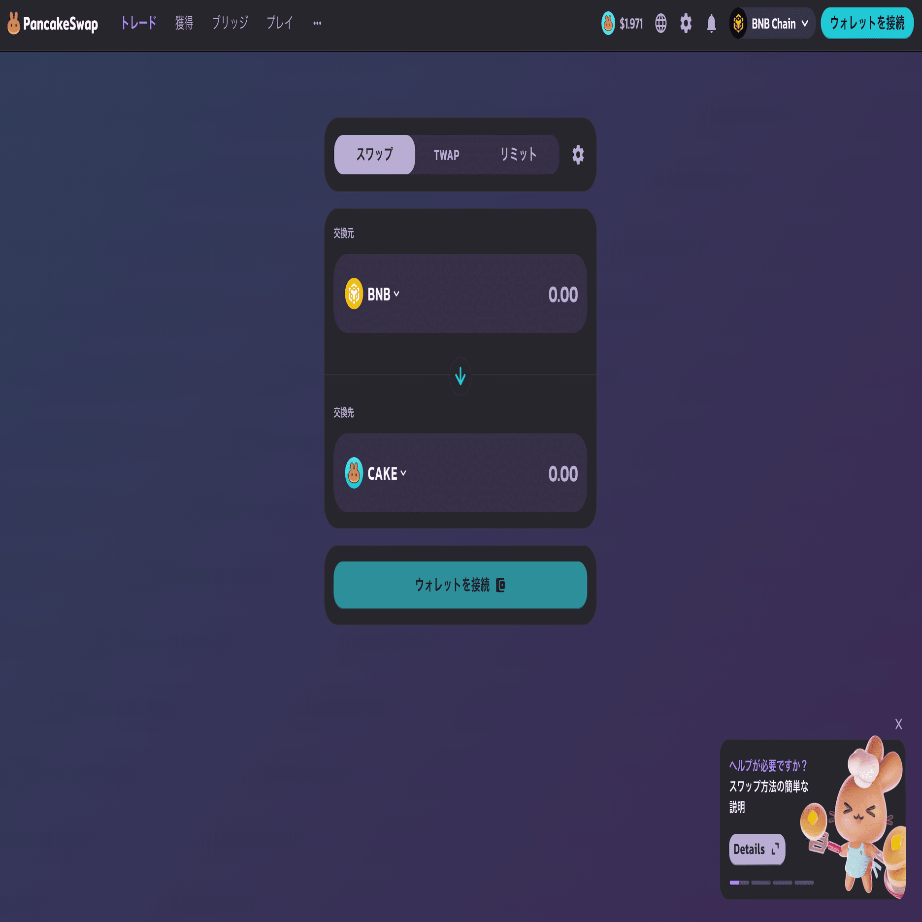• 「PancakeSwap(パンケーキスワップ)」はBNBチェーン上の分散型取引所(DEX)で、MetaMaskなどのウォレットで直接接続し、トークン同士を