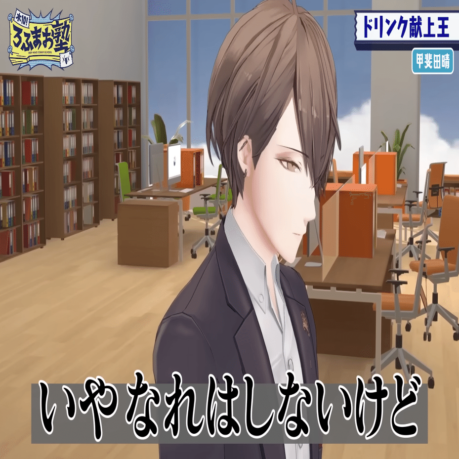 甲斐田がいじられて地面に這いつくばってたり、甲斐田が電流を食らって地面に這いつくばってたり、甲斐田がひどい目にあって地面に這いつくばってると、「あぁ、ろふまお見てるなぁ……」と思う。これ甲斐田が地面に這いつくばってりゃなんでもいいのでは?
