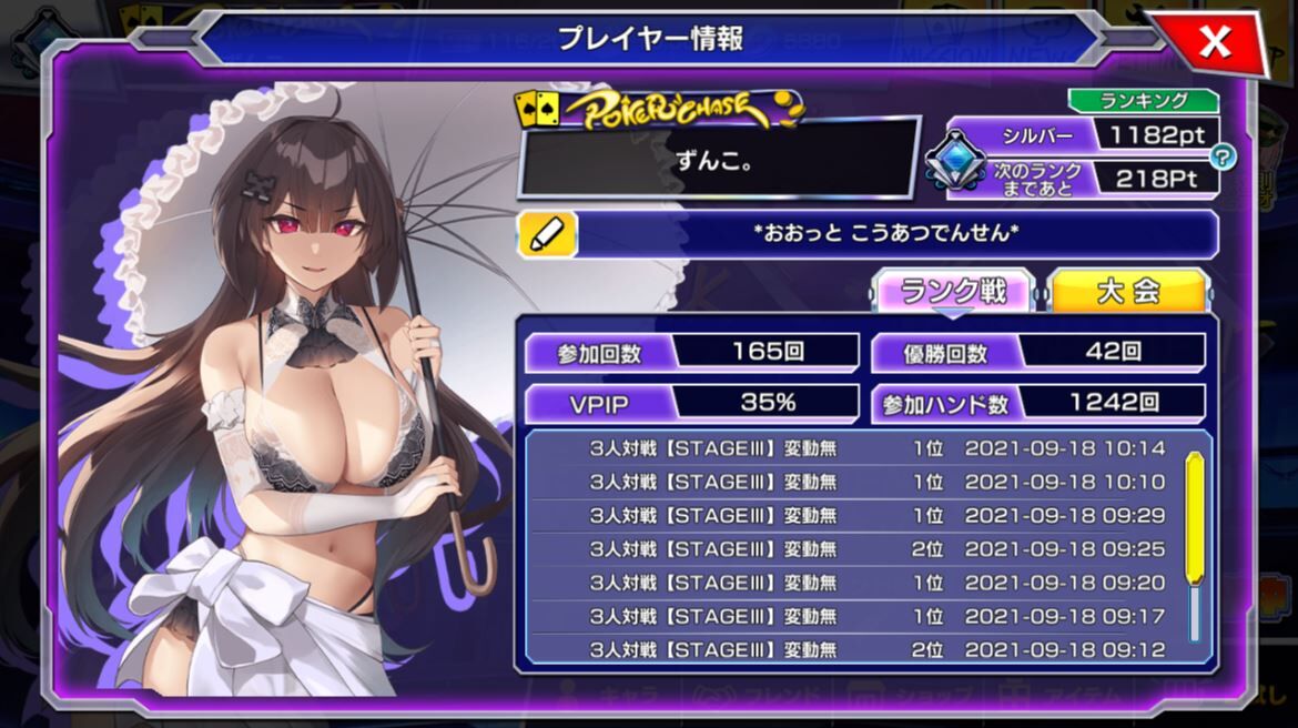 本作のランクポイントは他のポーカーゲームと違い、