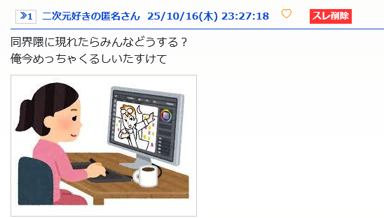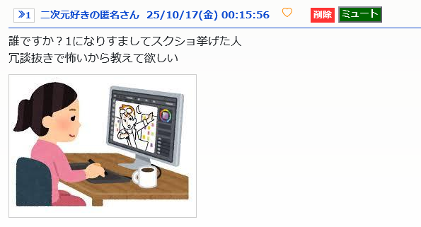 「スレ削除」のキャプチャを乗せるなりすましは本当に今まで一度でもあったの? - 38二次元好きの匿名さん25/10/17 00:33:23