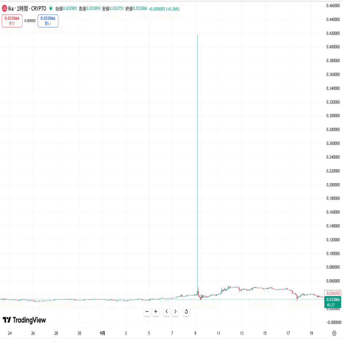 それまでずっとSUIの価格にほぼピッタリ連動していましたが、この価格つり上げ以降IKAは固有の価格変動をするようになりました。