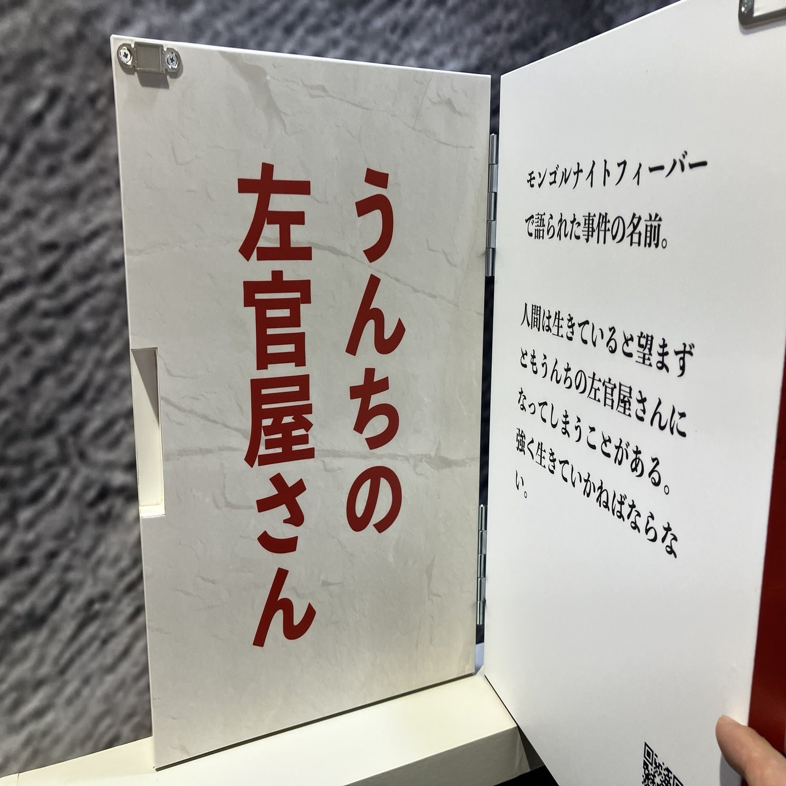 扉を手で開くと、名言が読めるようになっているコーナーです。