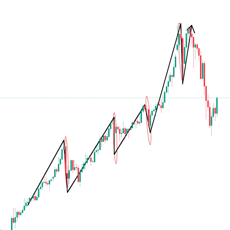 明確な上昇トレンド中(高値・安値切り上げ)なら、下落は“調整”と判断。