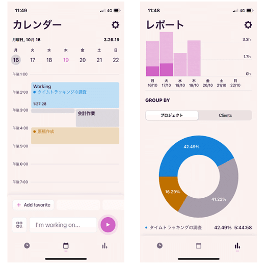 タイマーを使って計測するか、自分で手入力するかのどちらかの方法で作業時間を記録するものです。機能としては時間を記録する機能とその結果を分析してレポートしてくれる機能などが用意されており、単純でユーザインタフェースも分かりやすく設計されています。また、色々なプラットフォームに対応しており、スマートフォン用のアプリなども用意されています。