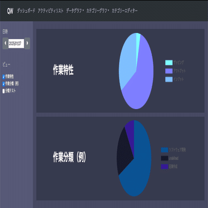 ビューとカテゴリーという概念に基づいて記録されたアクティビティの分類を行うことができます。記録した作業データは、色々な観点で分類できます。例えば以下のようなものがあります。