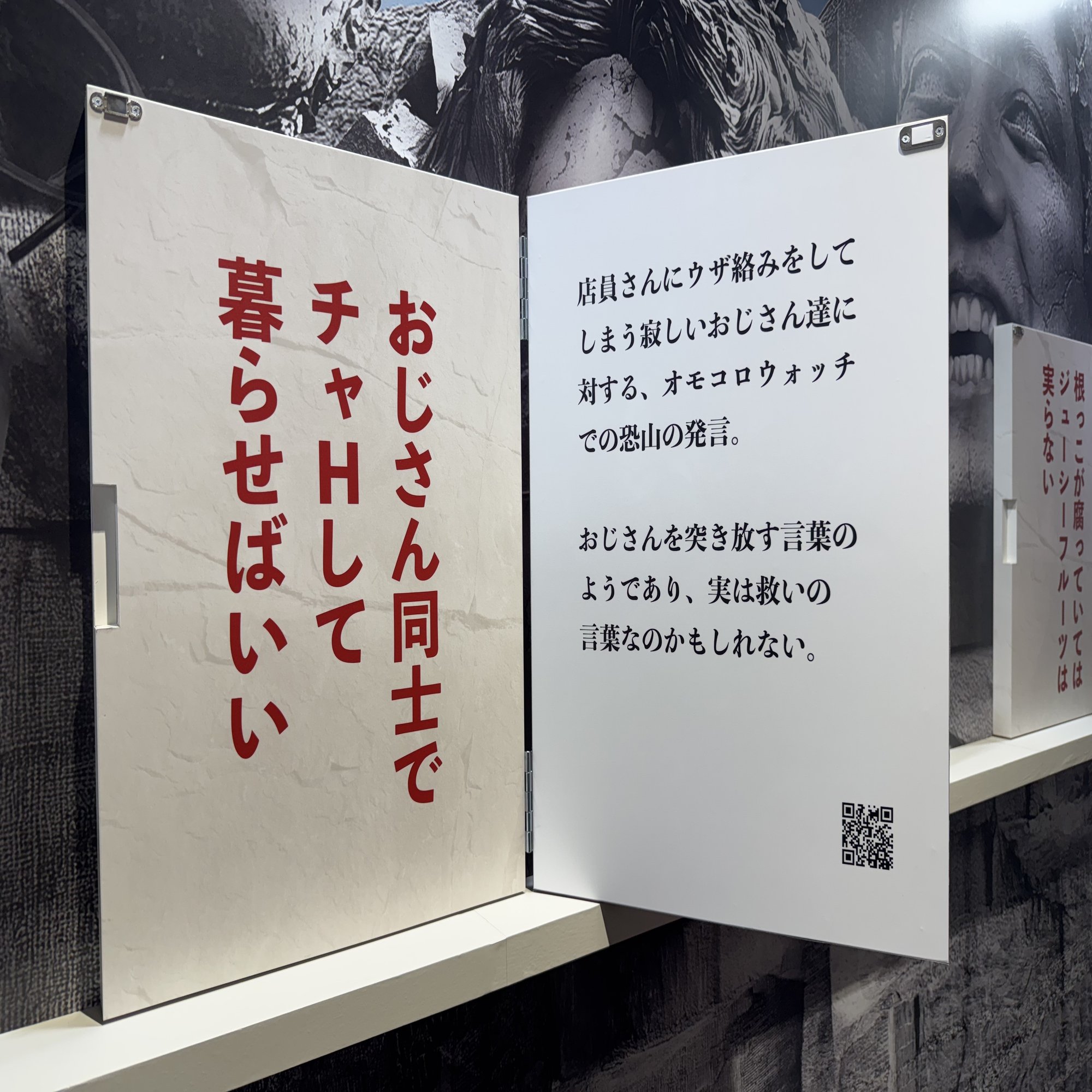 オモコロ展に行く直前、ぶつかりおじさんにぶつかられて最悪の気分だったんだけど、オモコロ展のおかげで上書きされた〜!すごい楽しかった!