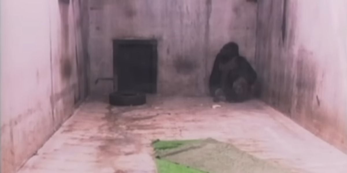 Instead of relinquishing Ivan to a facility with the means to care for him in some semblance of what he deserved, the owner of the B&I Circus Store constructed a concrete prison for the adolescent gorilla. Ivan’s desolate 14-by-14-foot enclosure featured one window for visitors to look through, a television set, a tire, and a swinging bar.